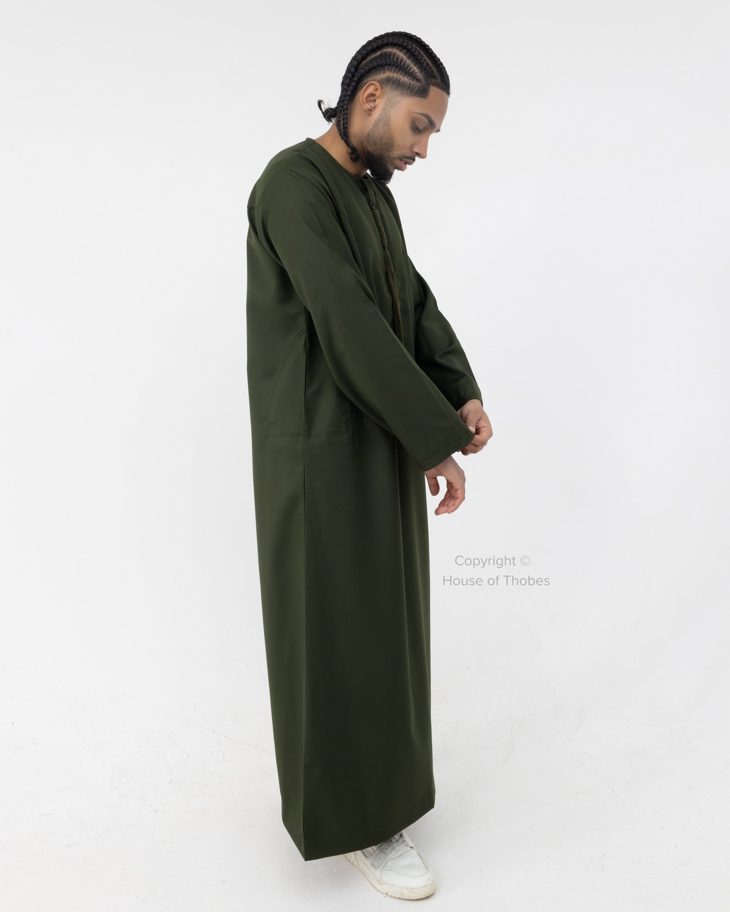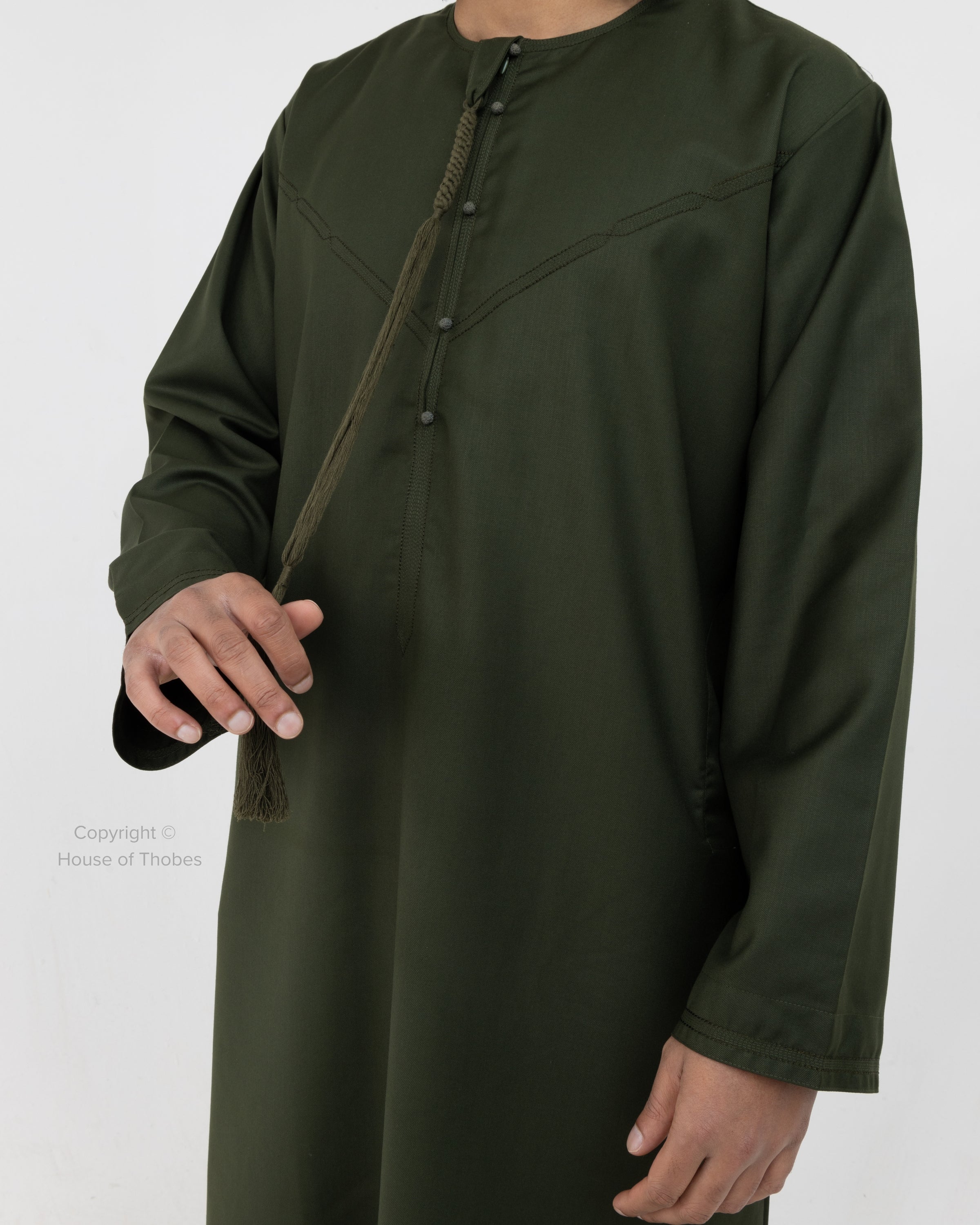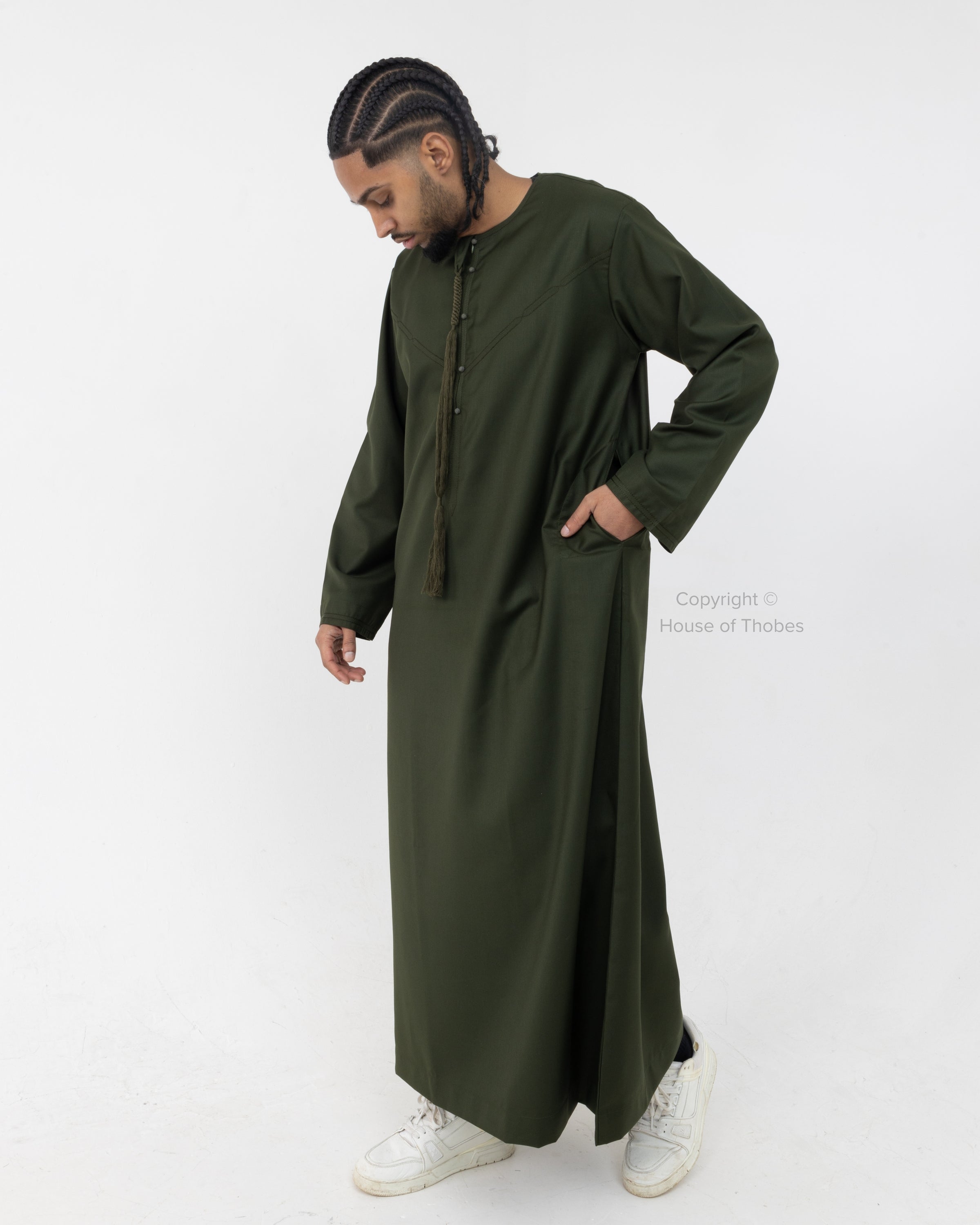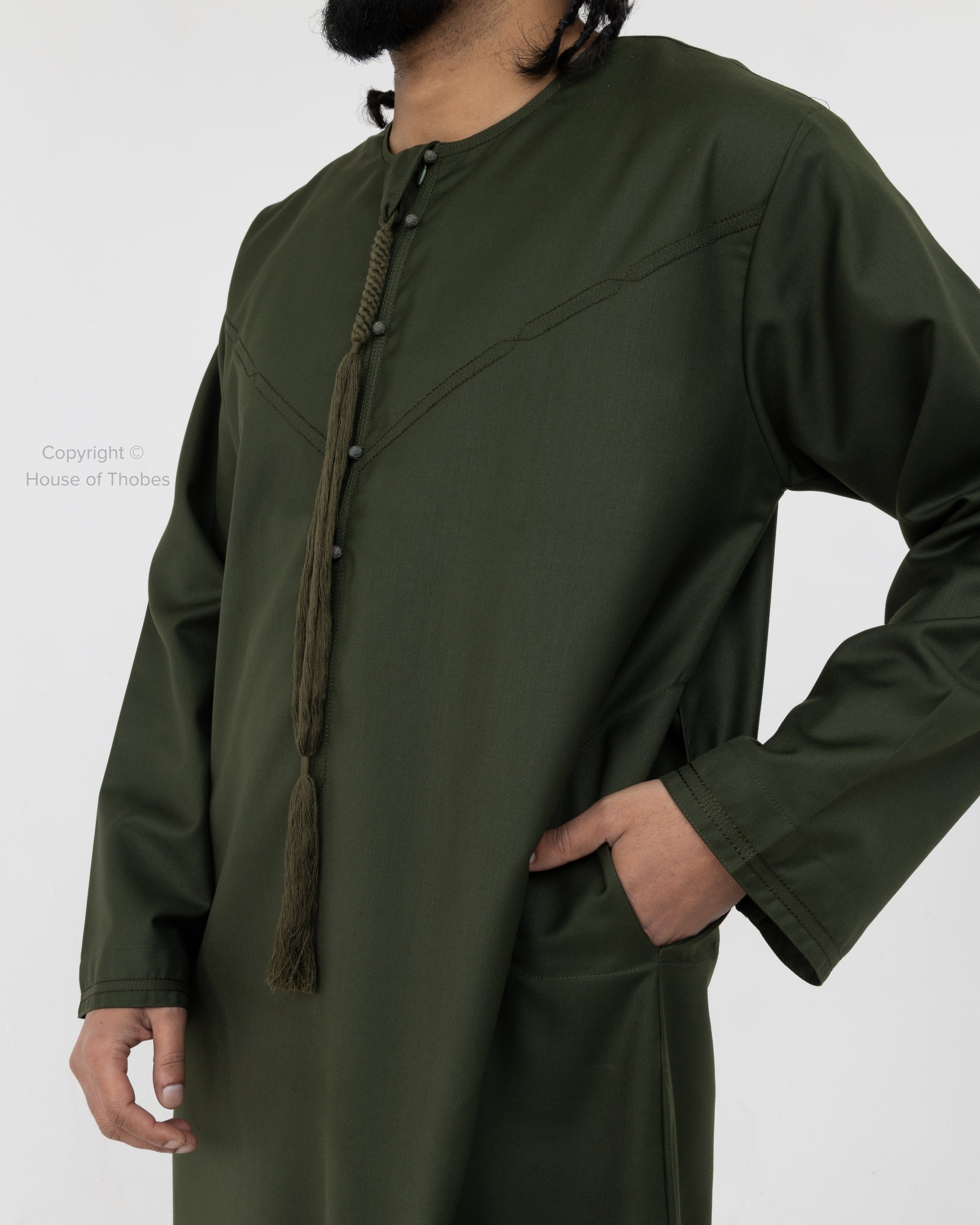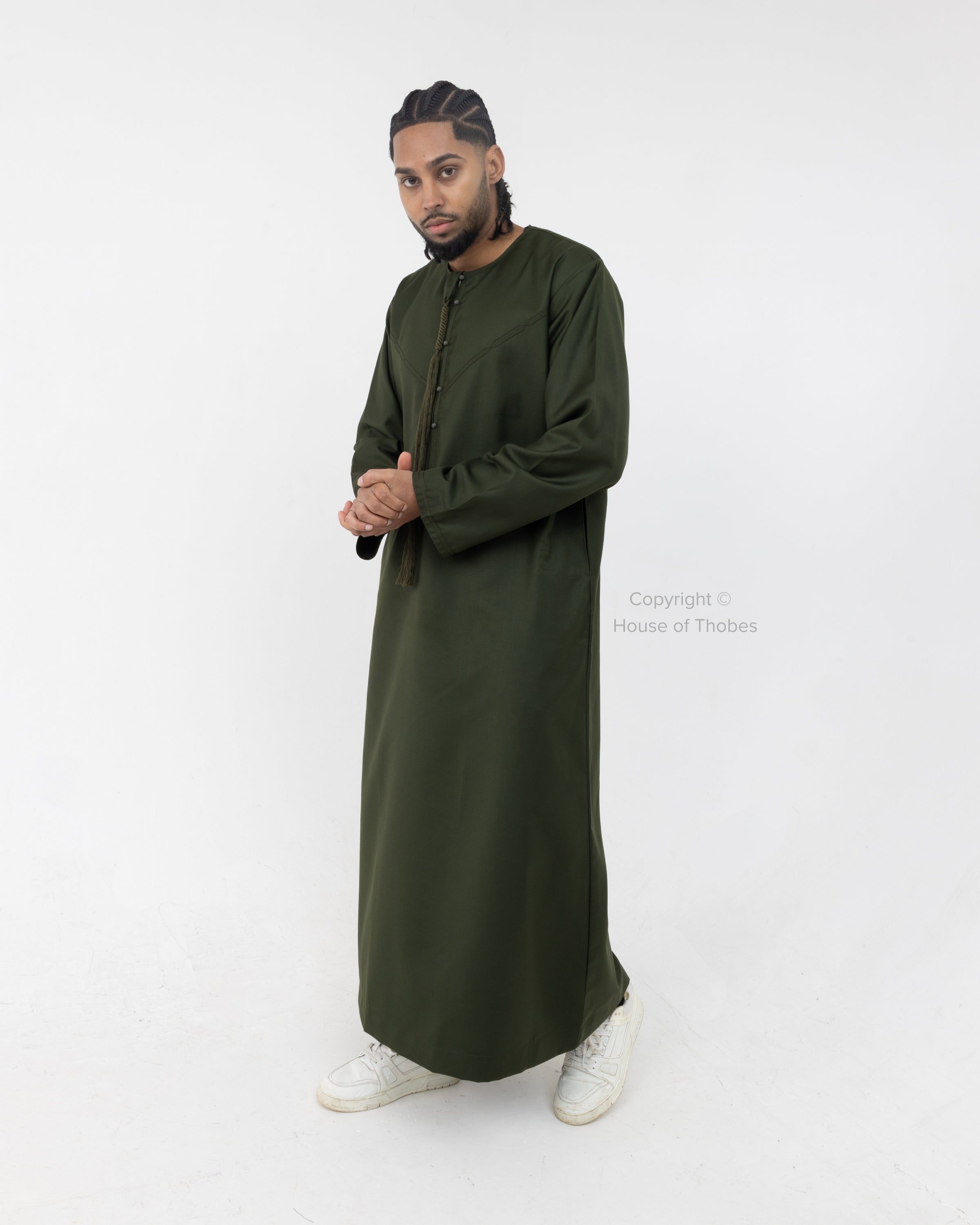 Luxury Dark Olive Green Emirati Tassel Thobe #MET3