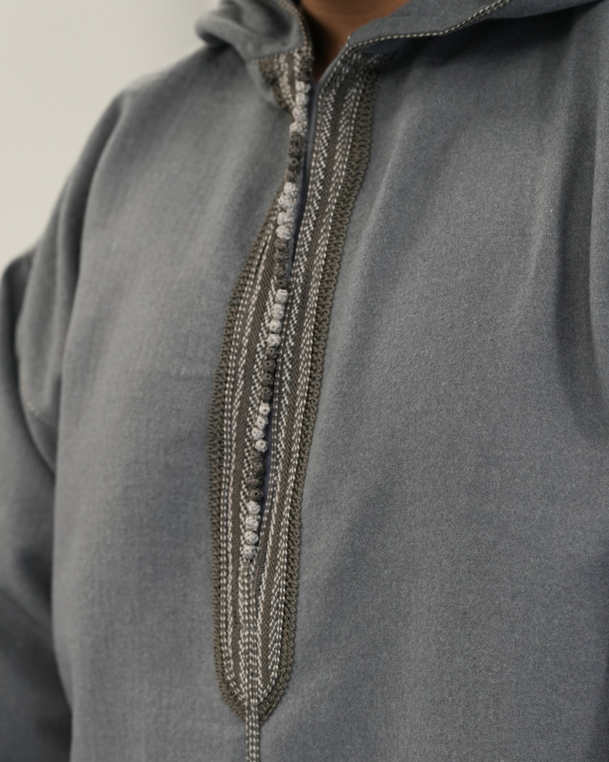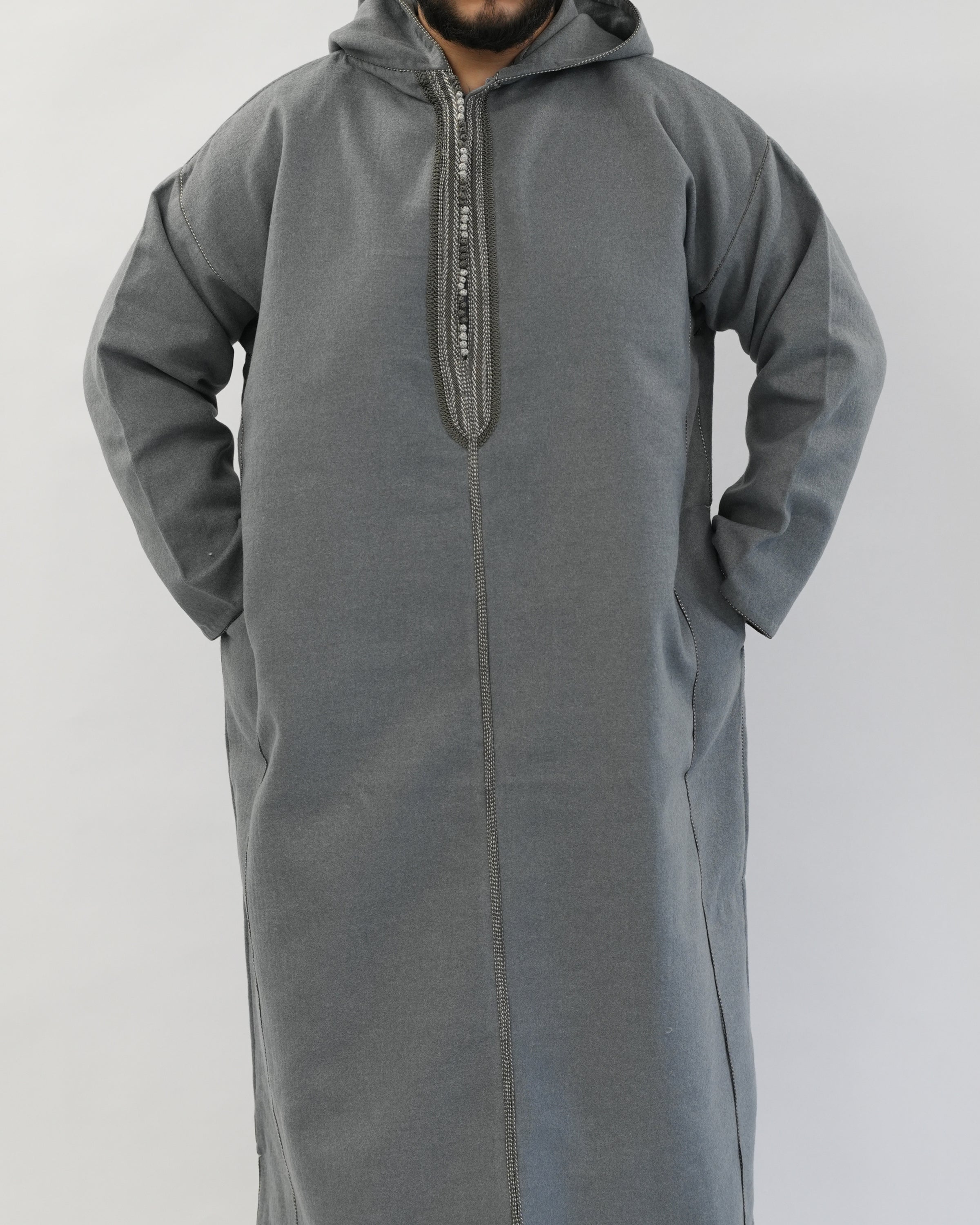 Luxury Grey Winter Moroccan Djellaba | Thobe with hood