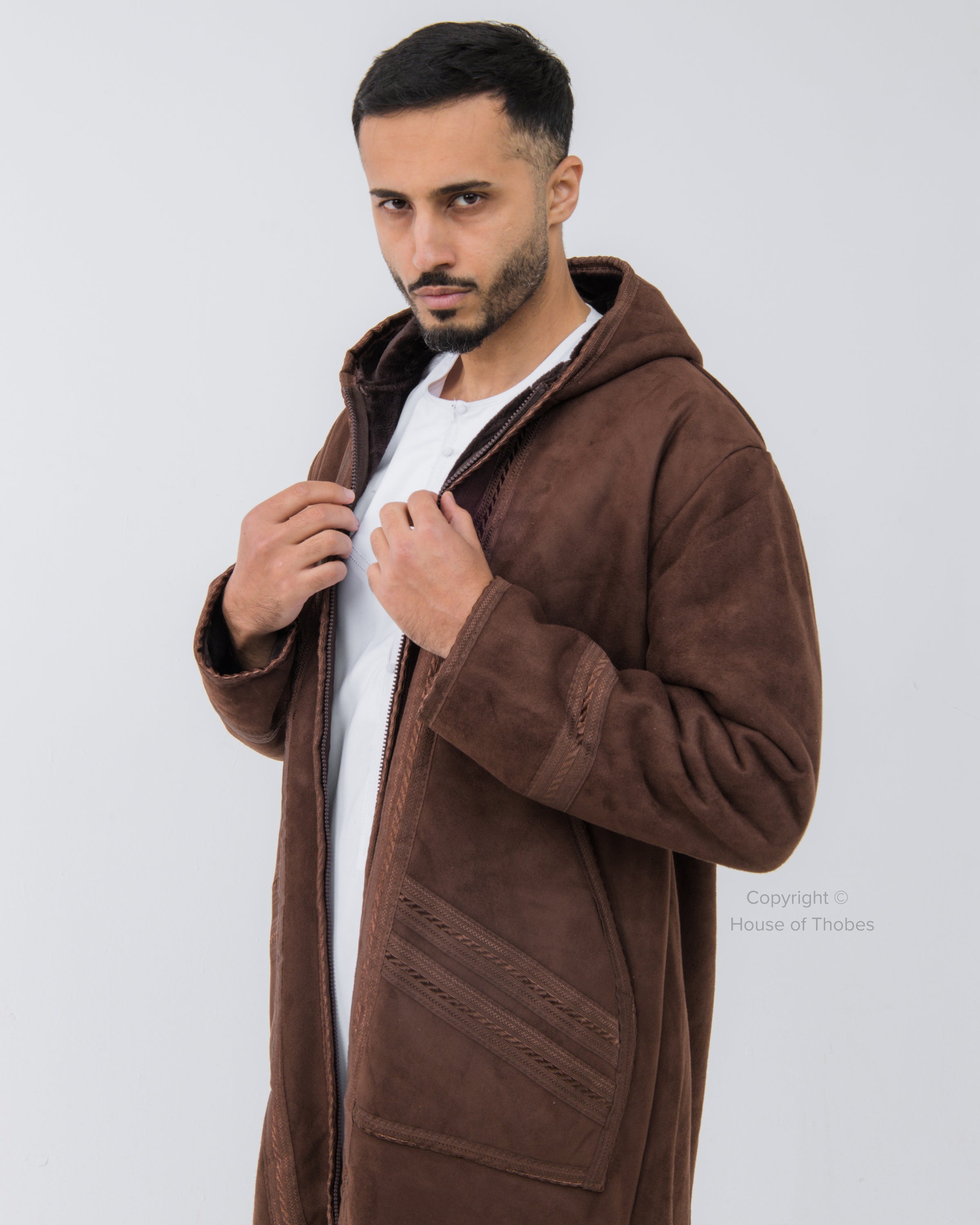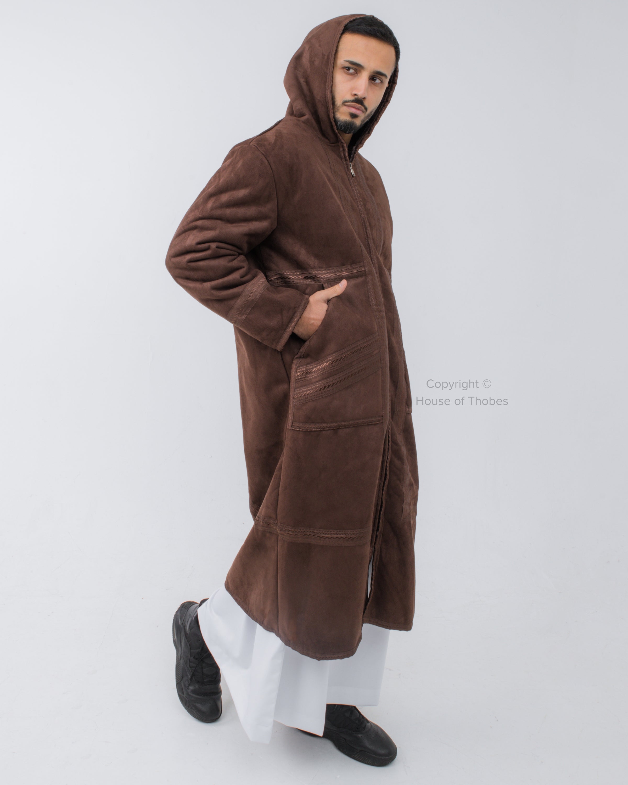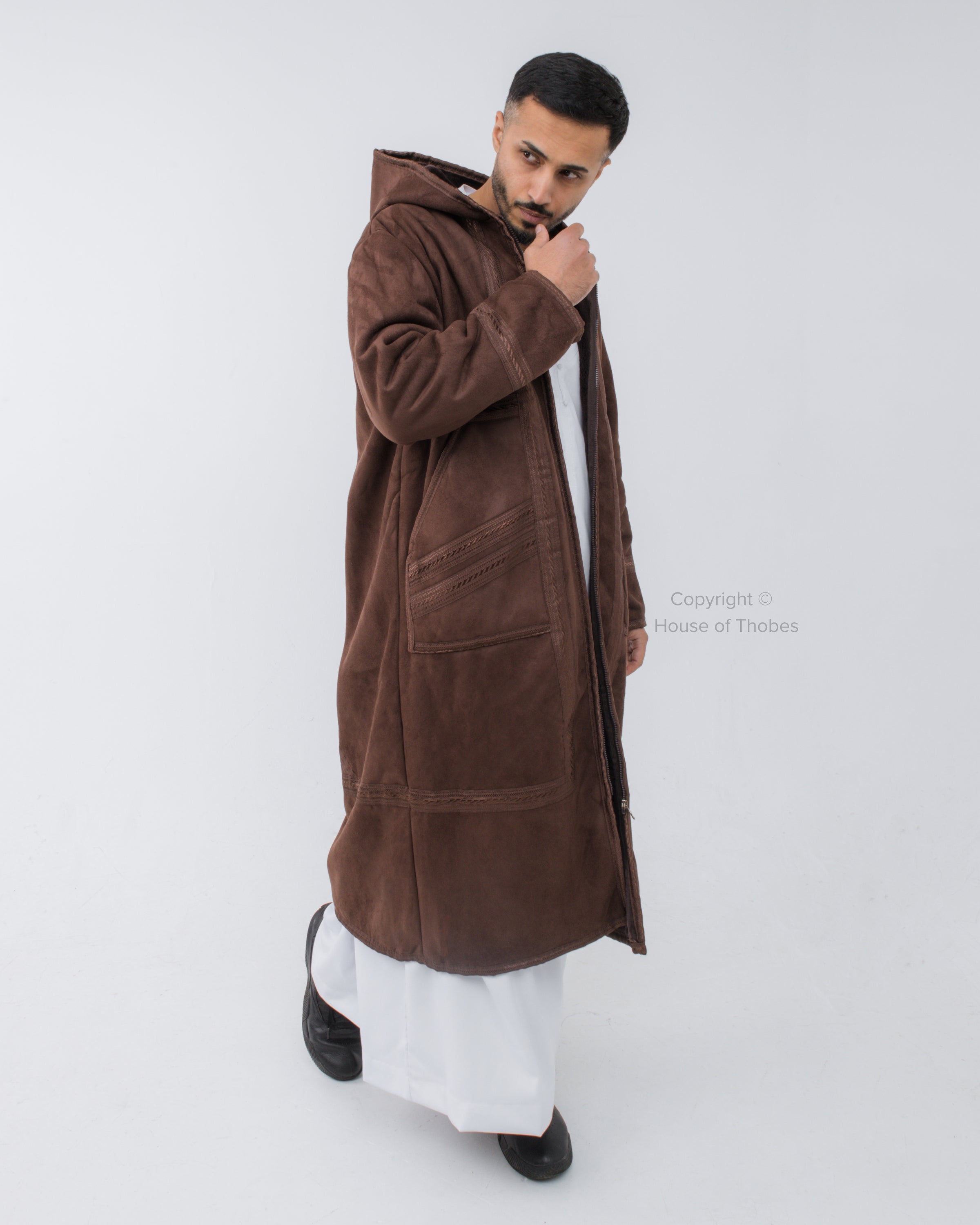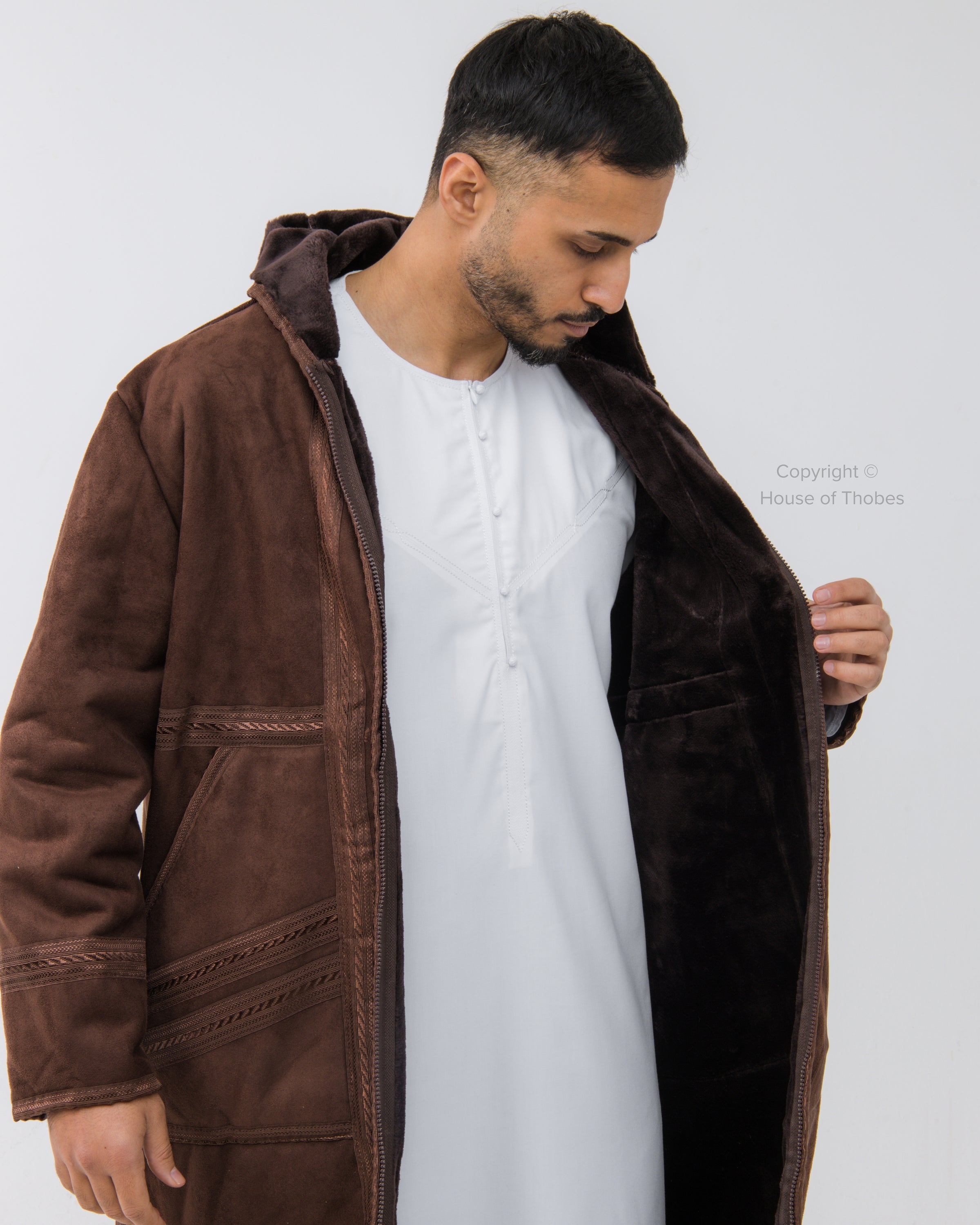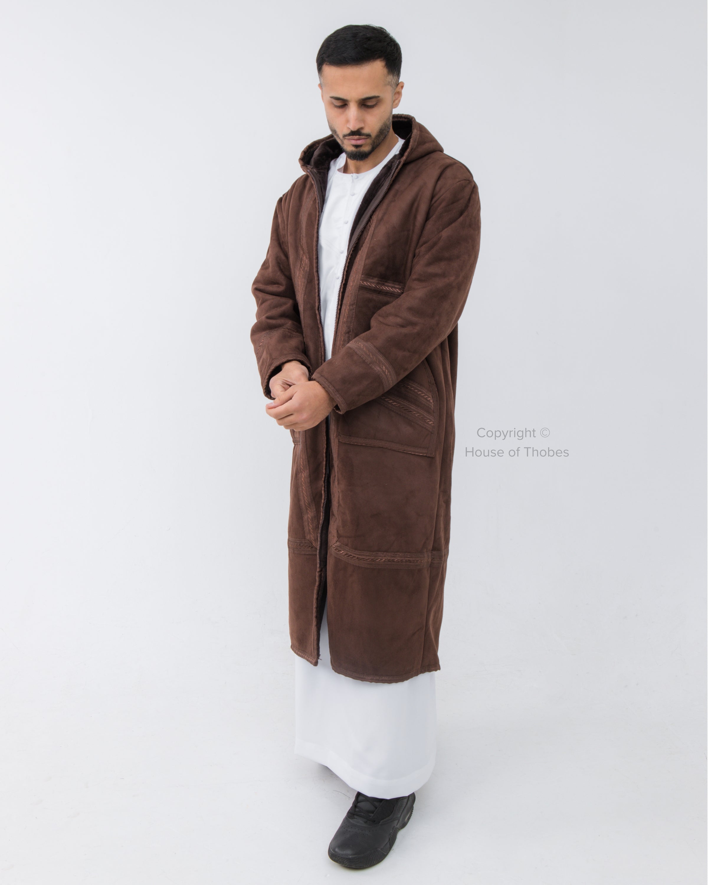 Luxury Brown Farwa Bisht | Winter Thobe Overcoat MFB3