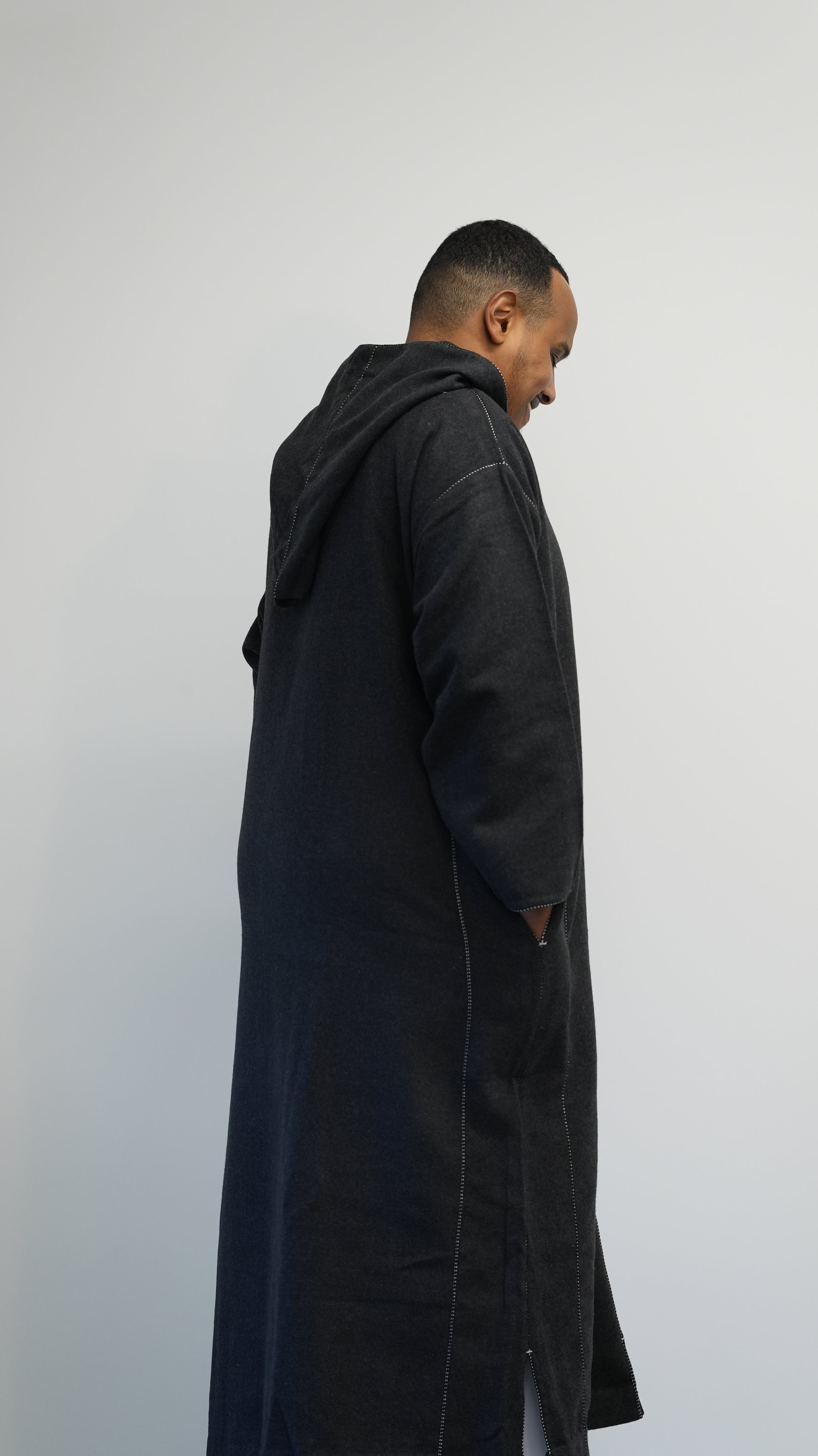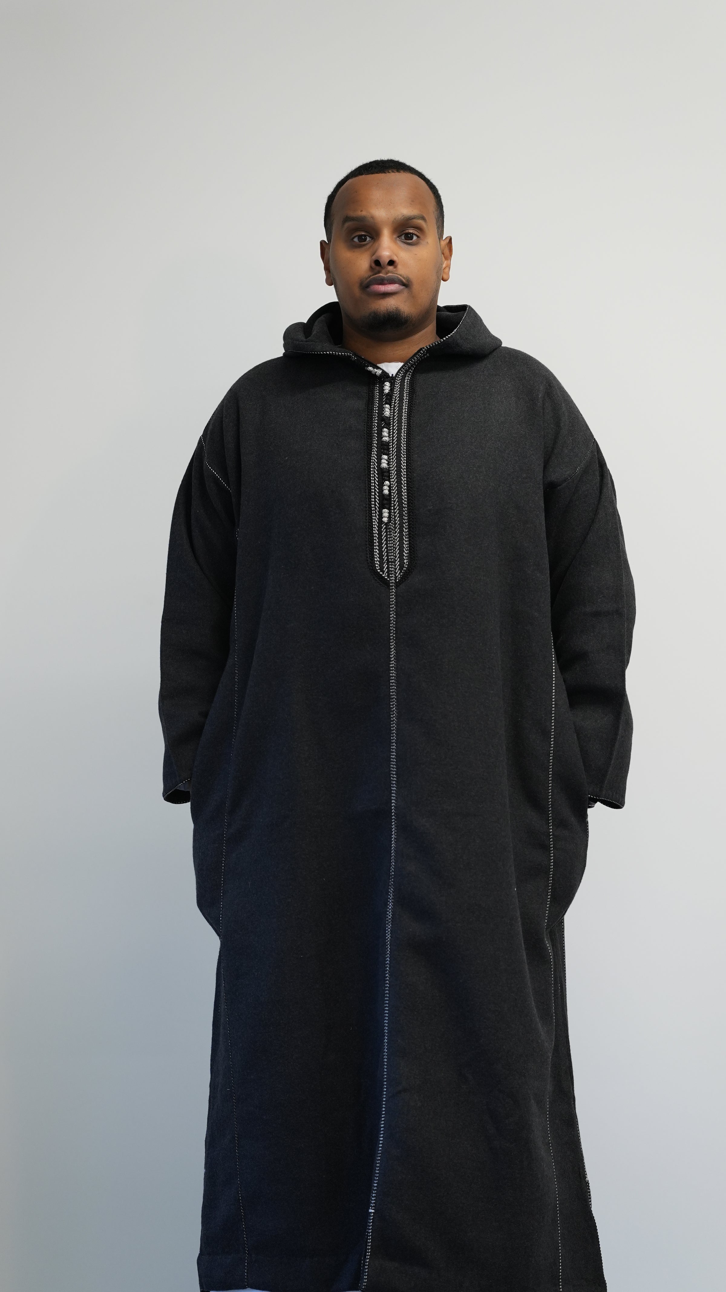 Luxury Black Winter Moroccan Djellaba | Thobe with hood