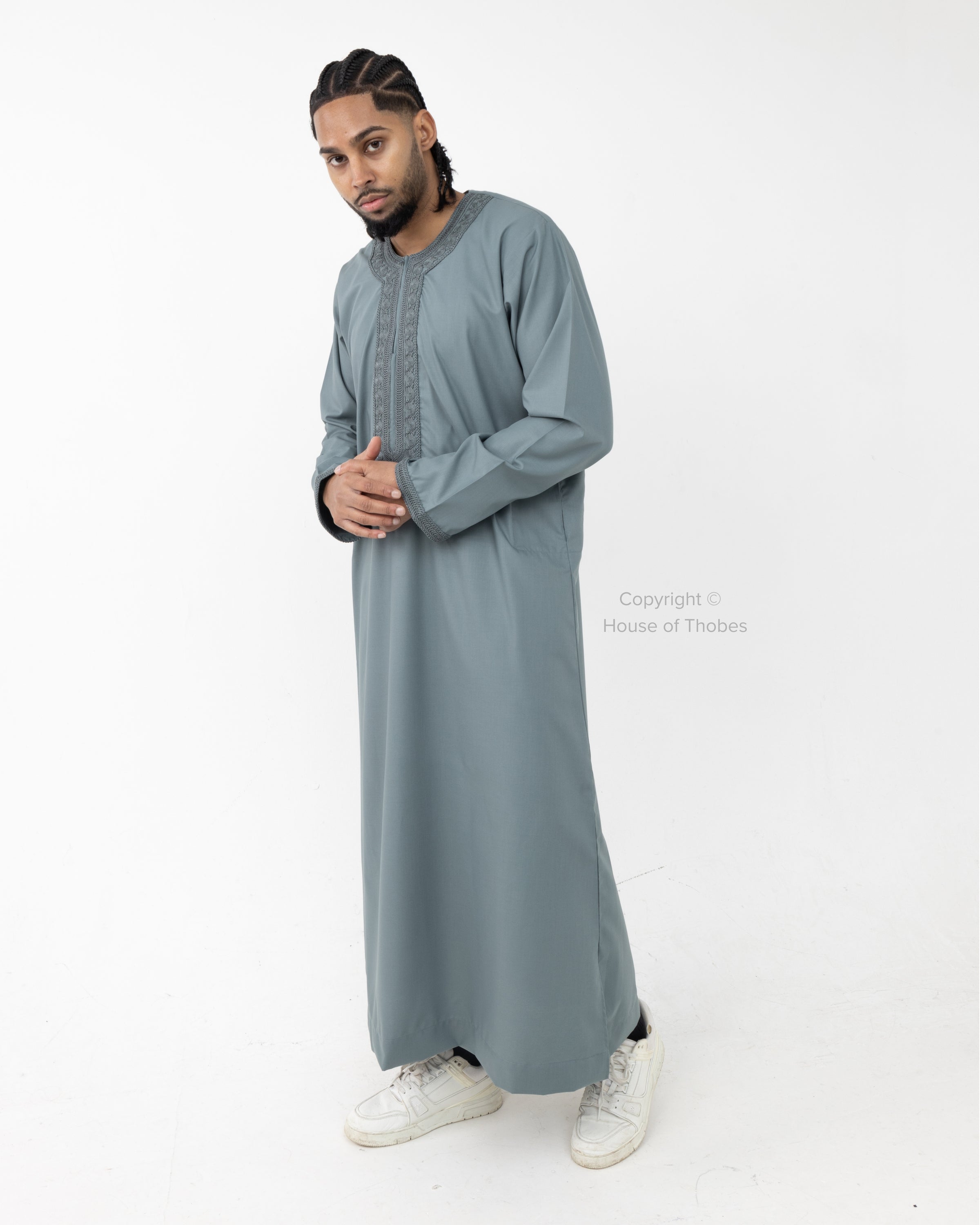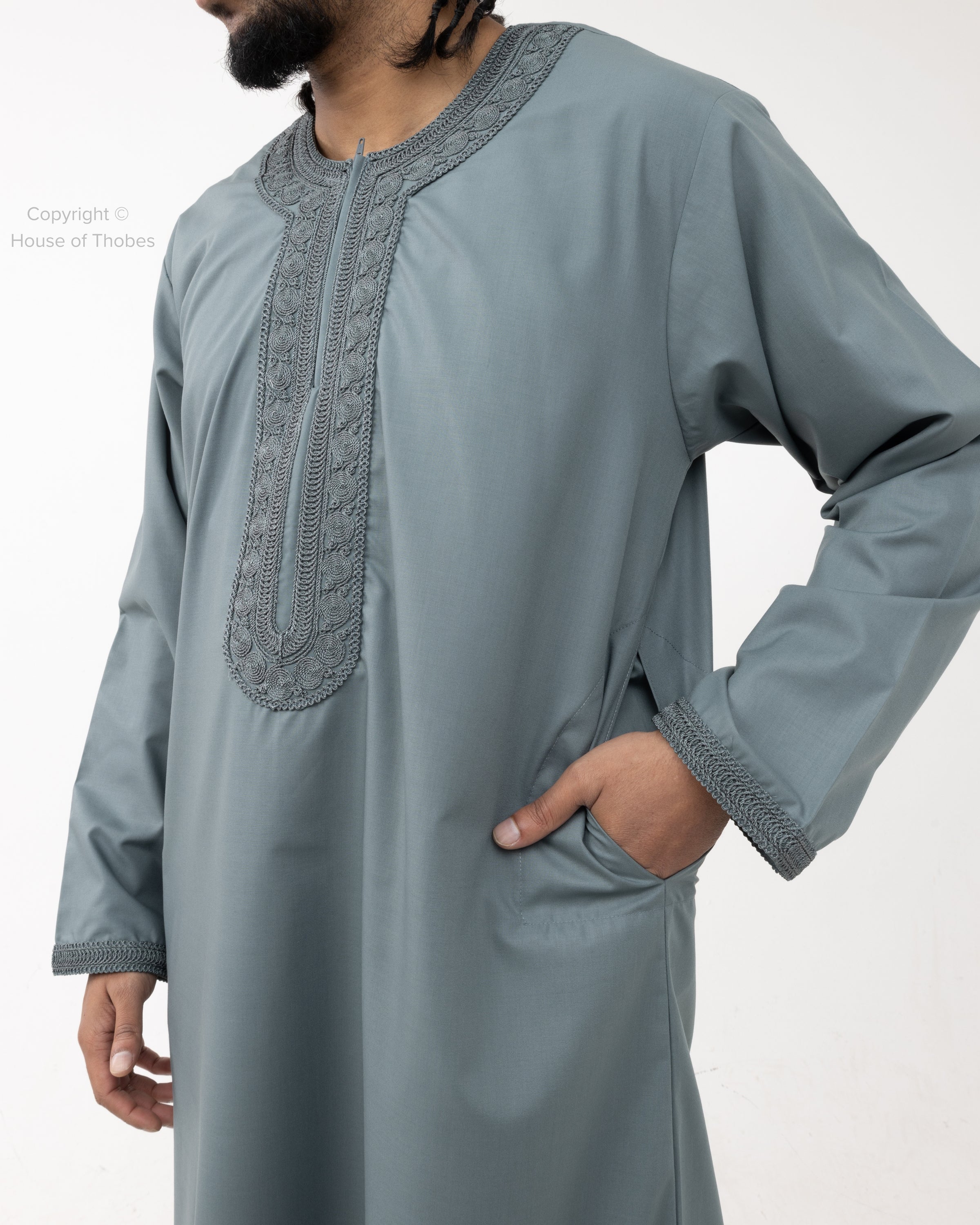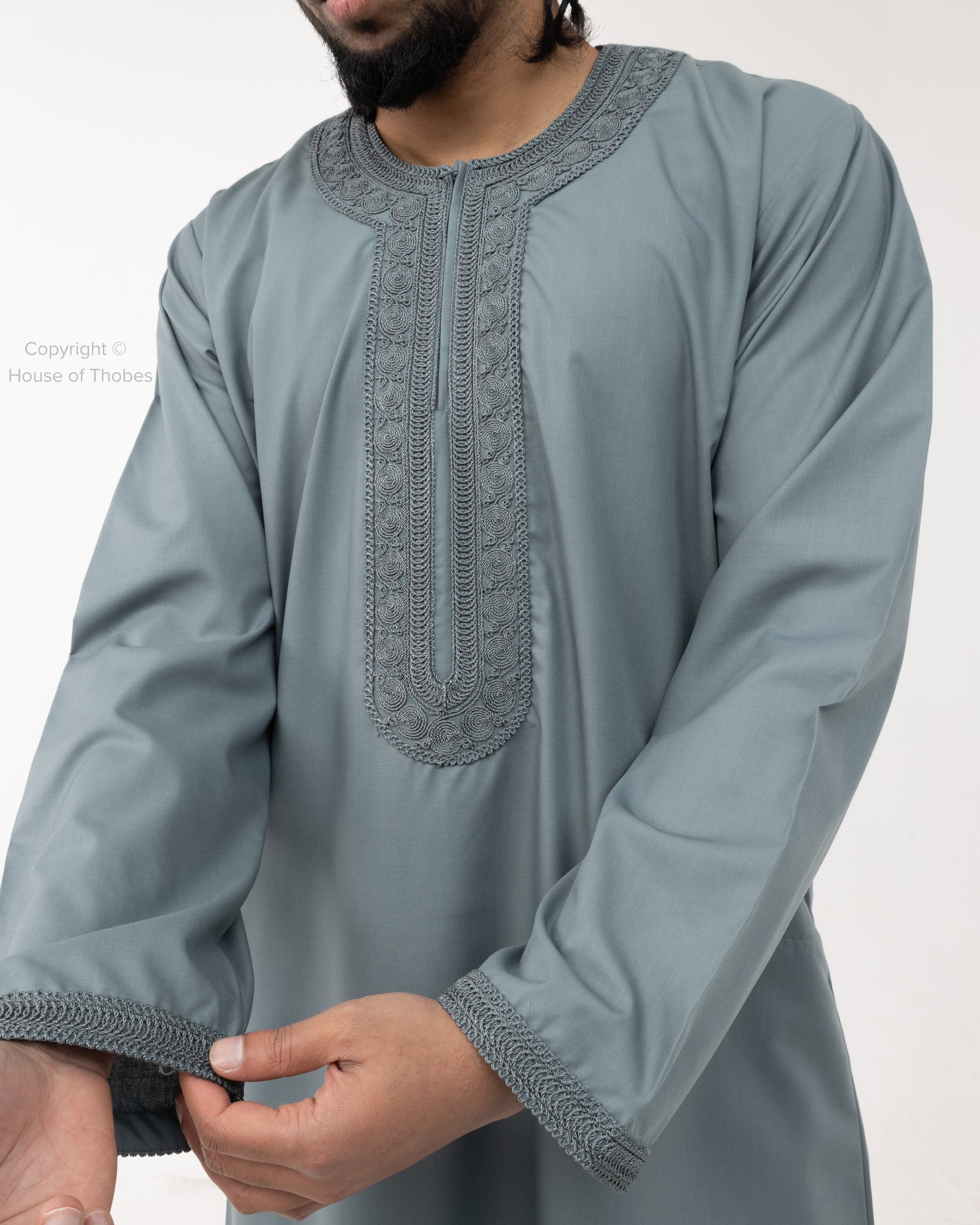 Luxury Cool Grey Moroccan Kaftan | Thobe MGL3