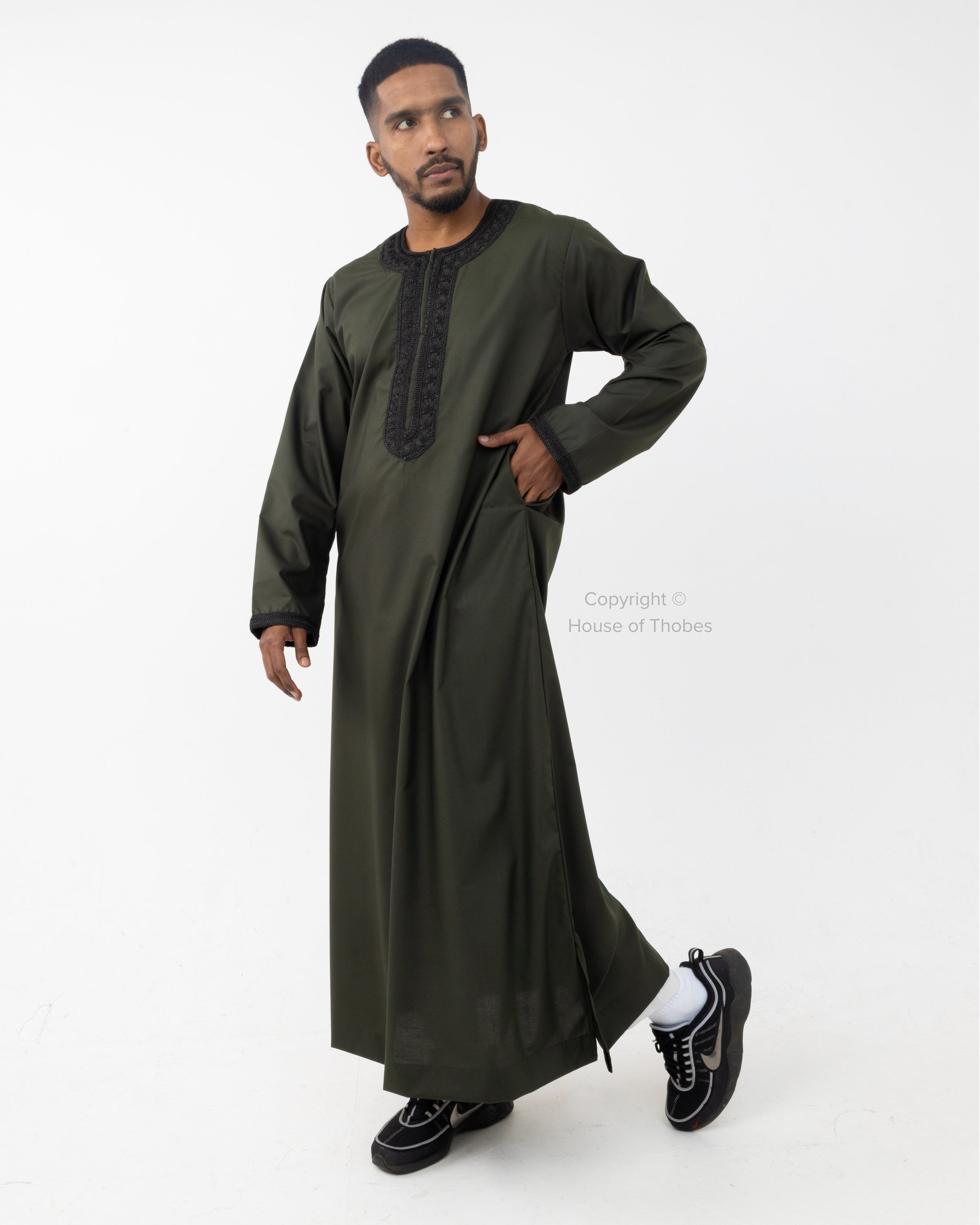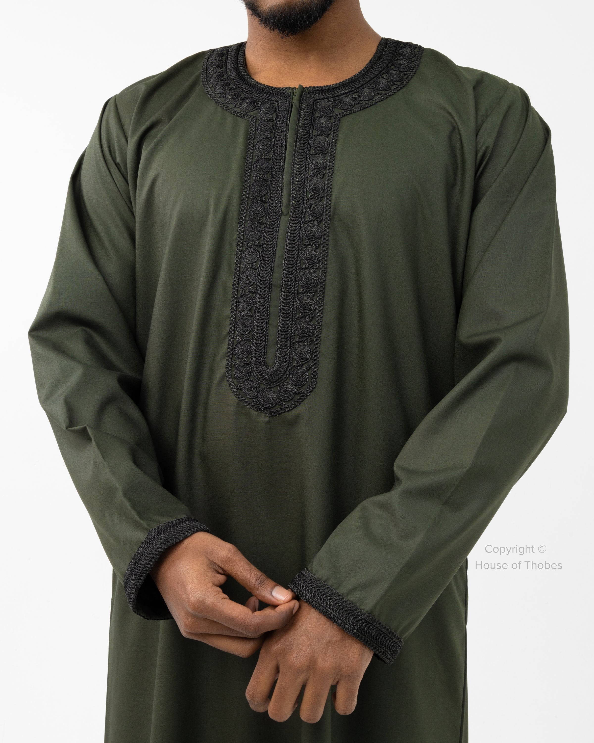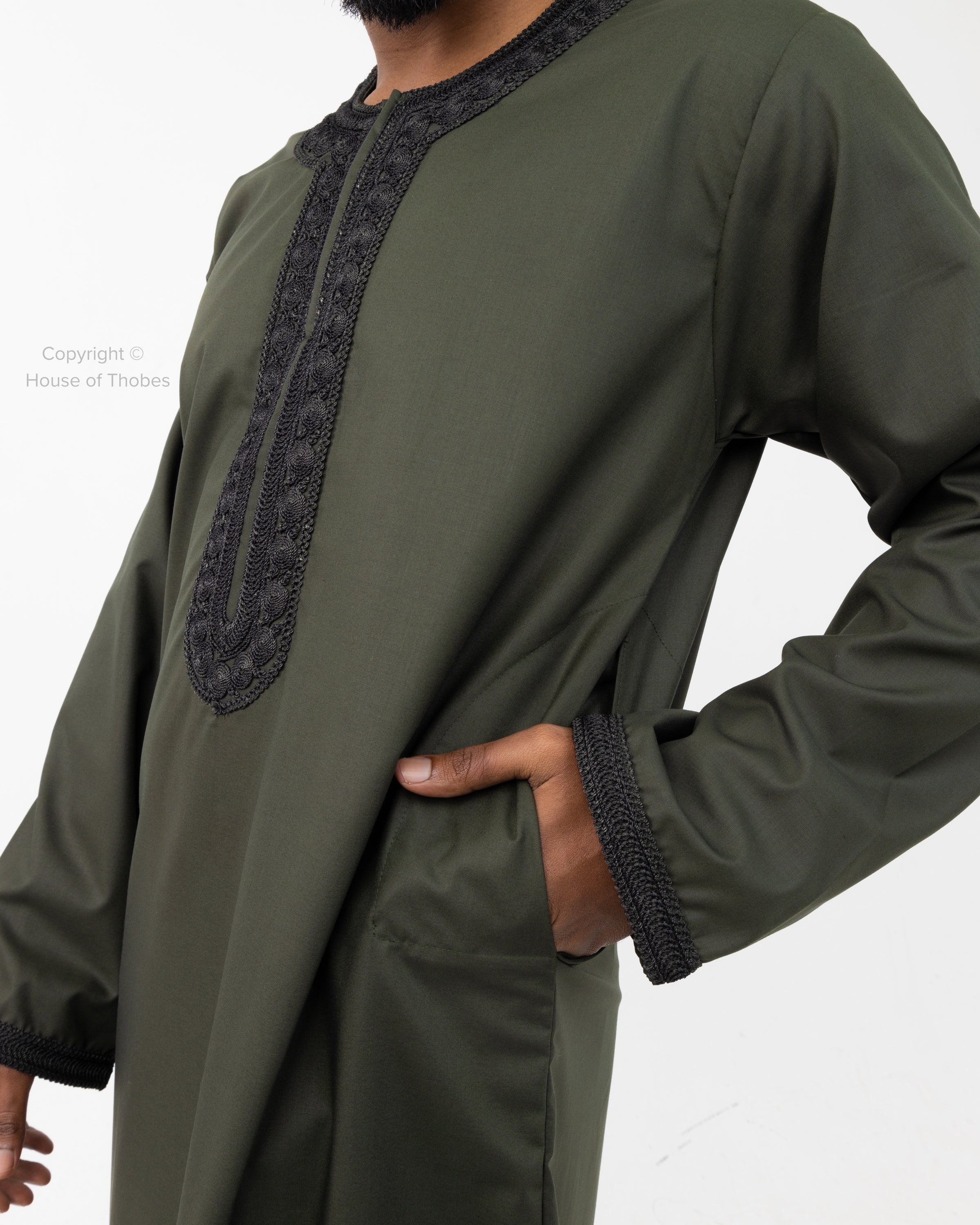 Luxury Dark Olive Green Moroccan Kaftan | Thobe MGL2