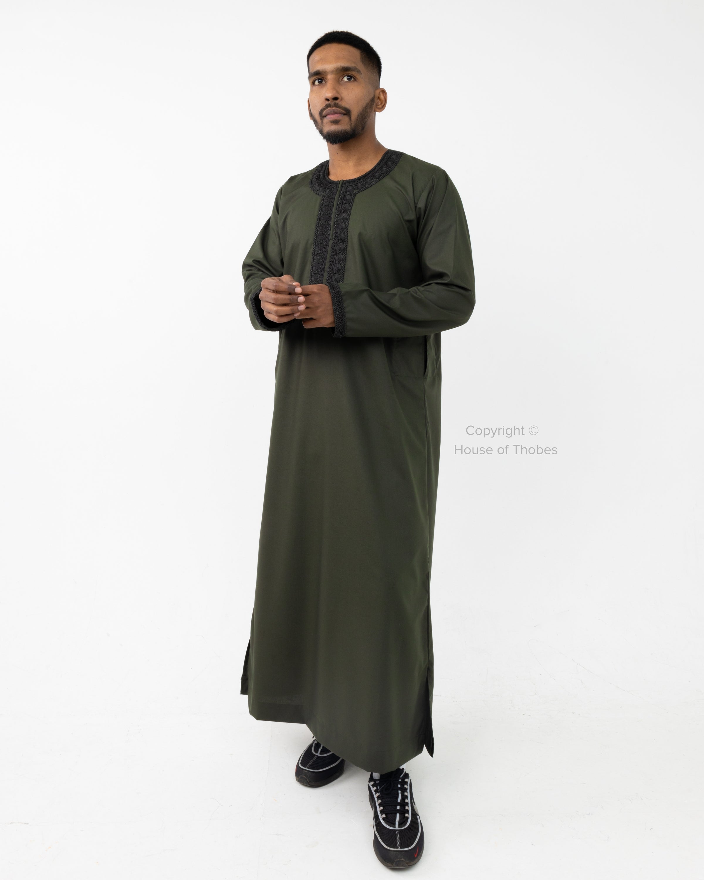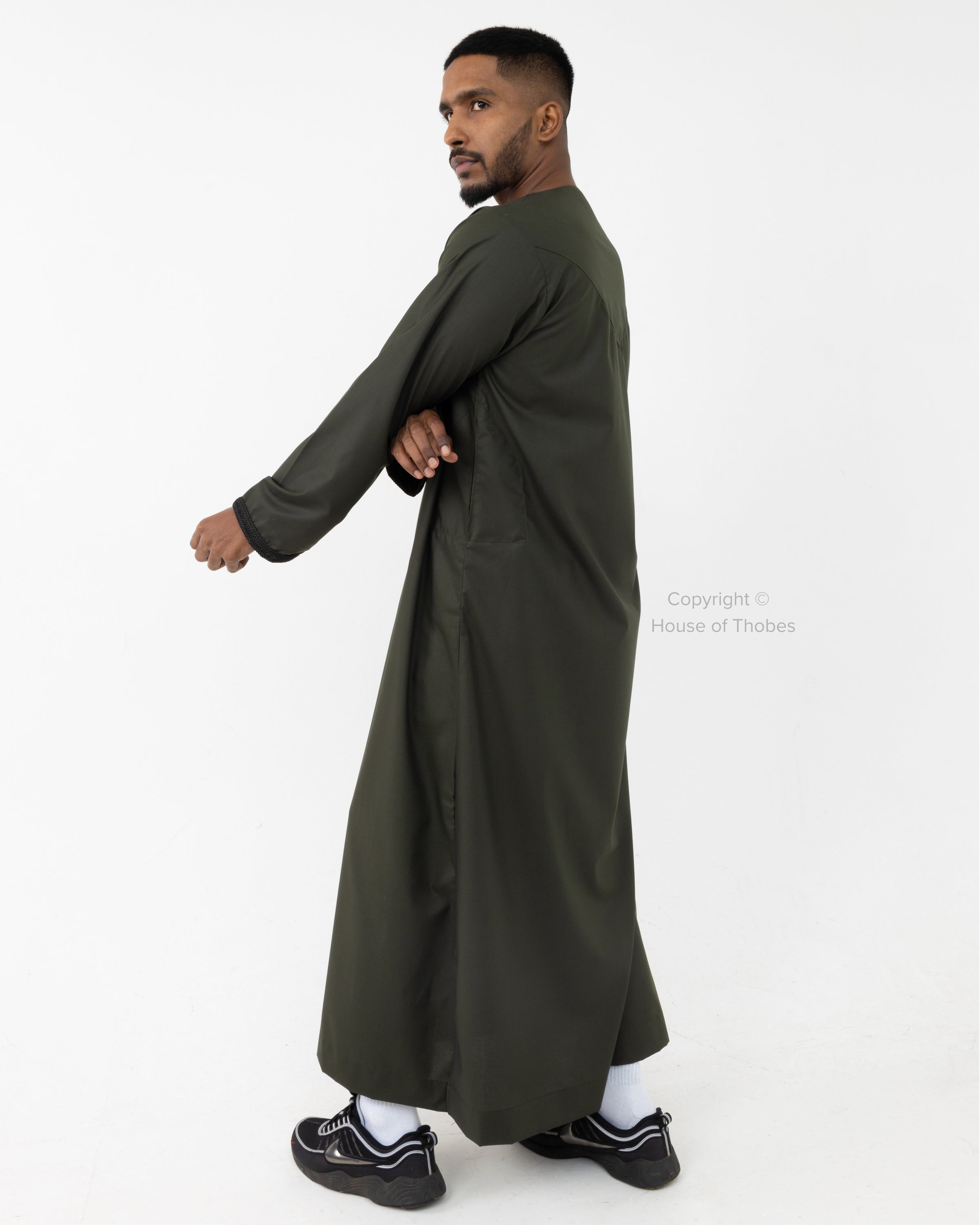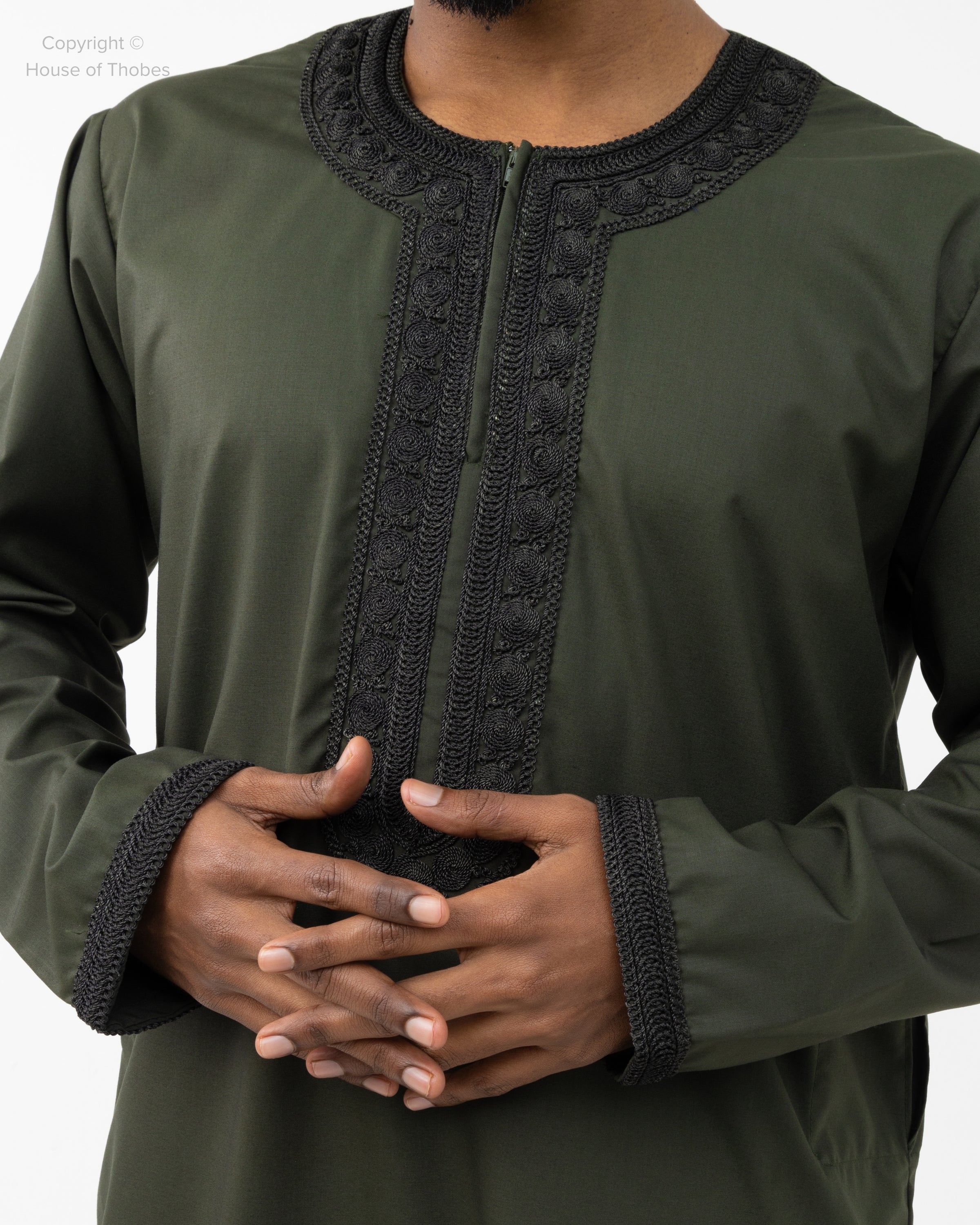 Luxury Dark Olive Green Moroccan Kaftan | Thobe MGL2