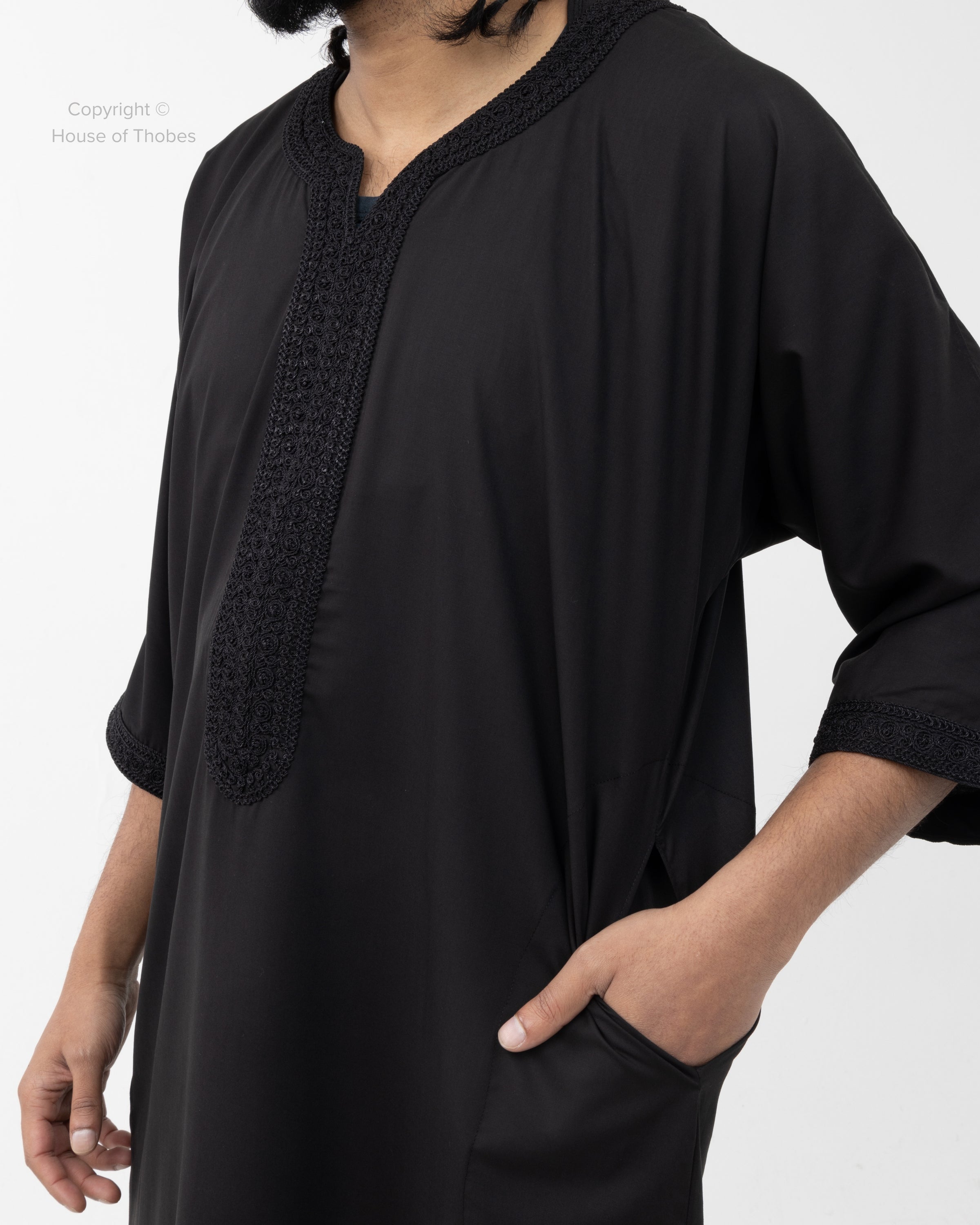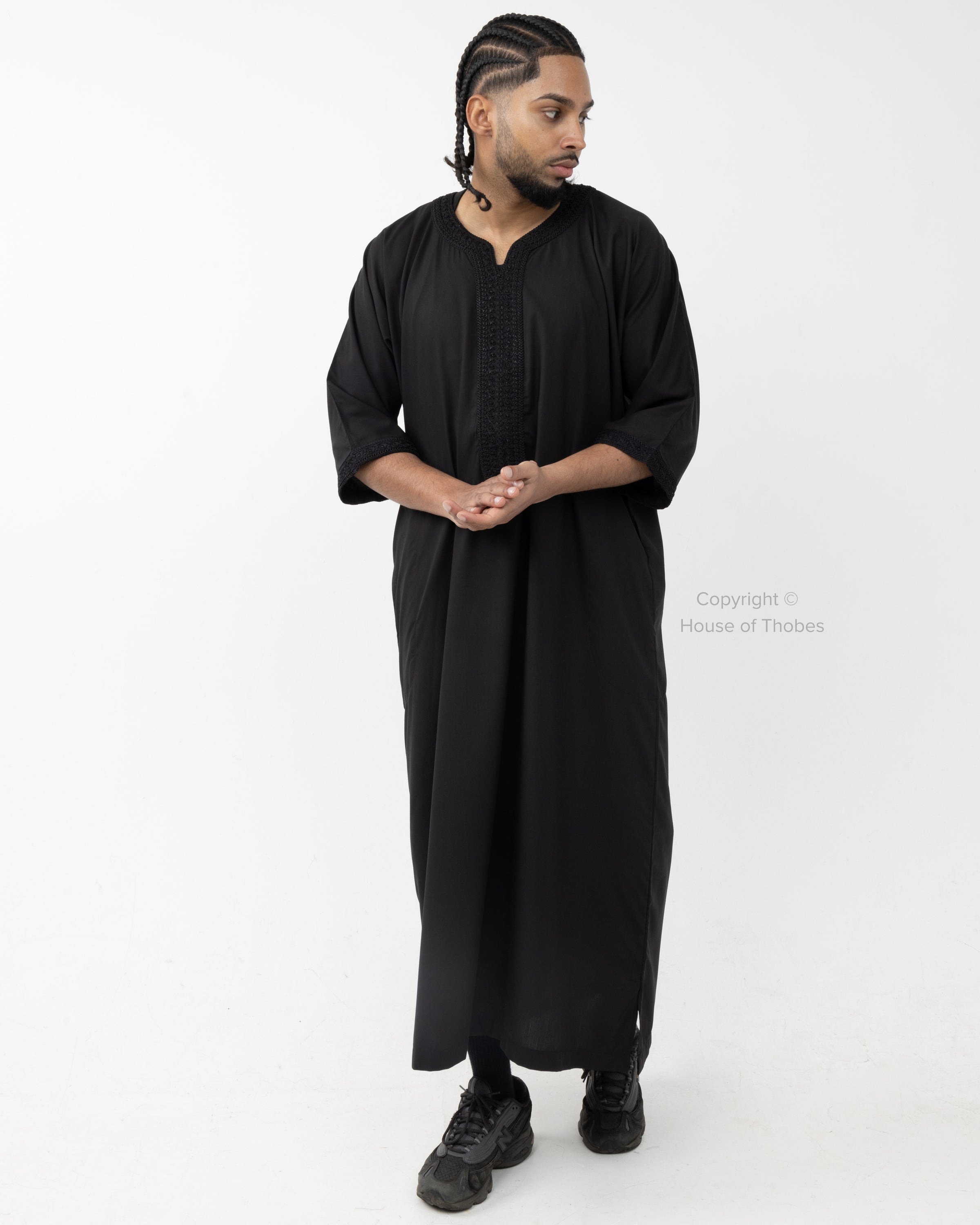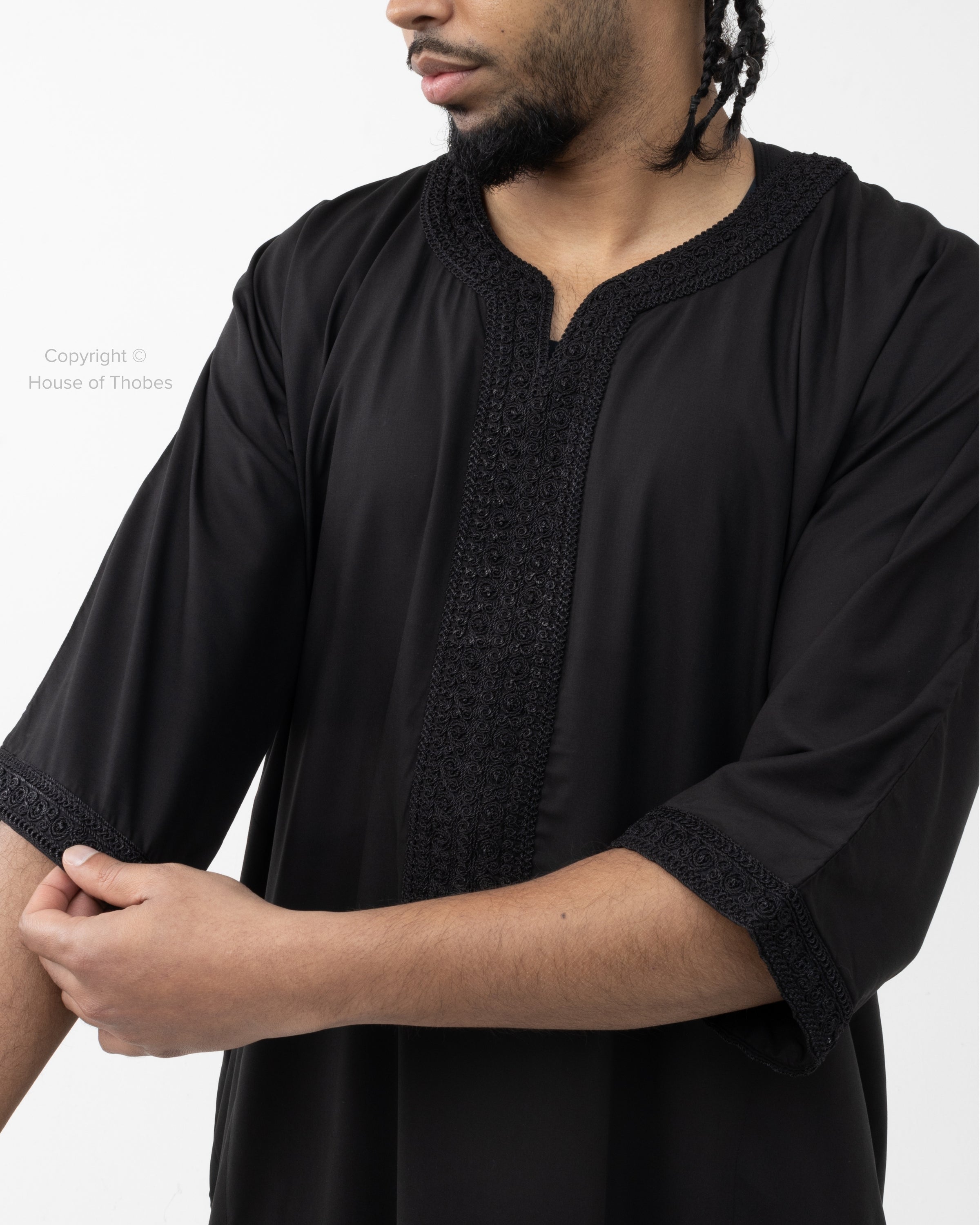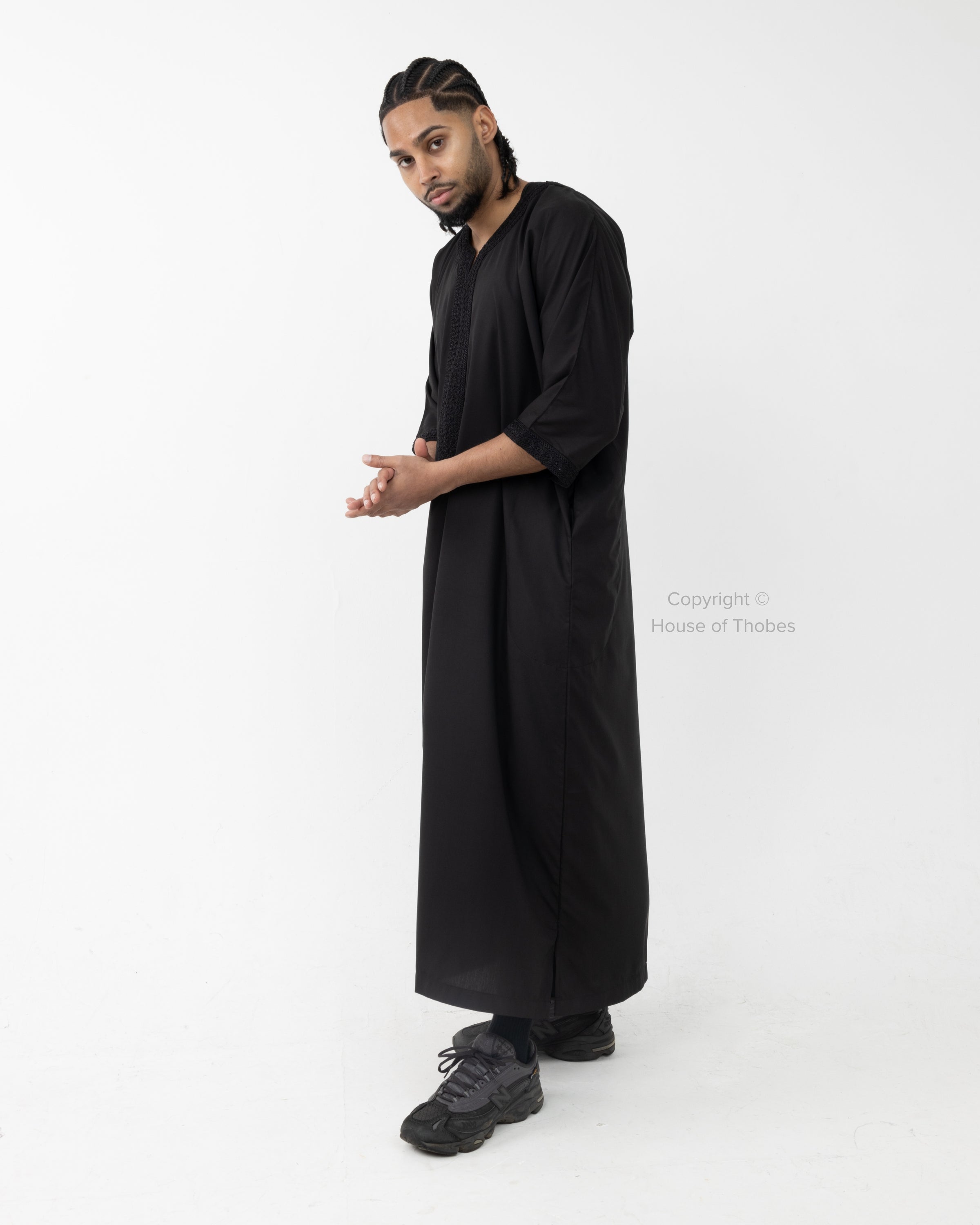 Premium Black Moroccan Gandoura | Thobe #MGS1