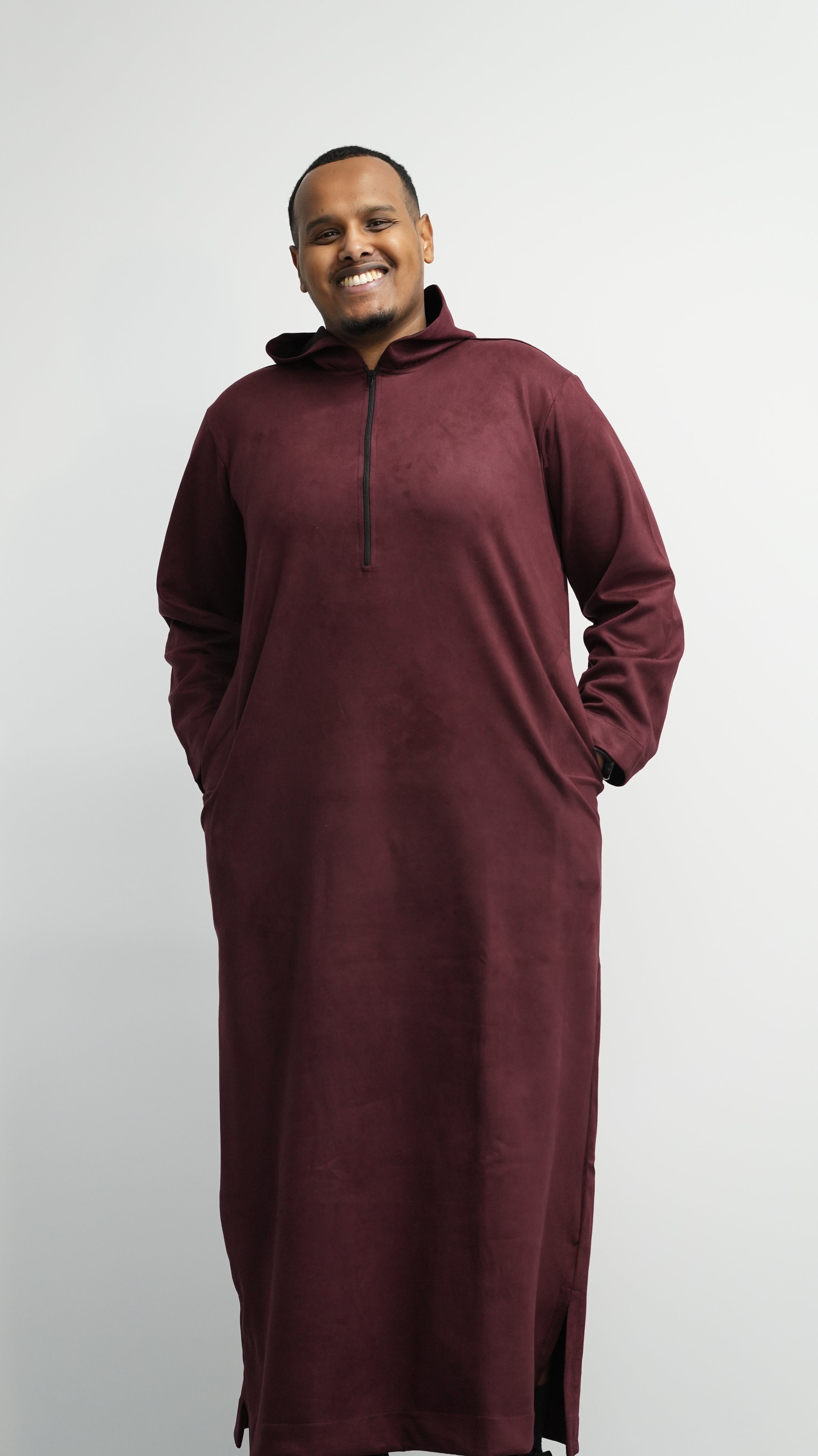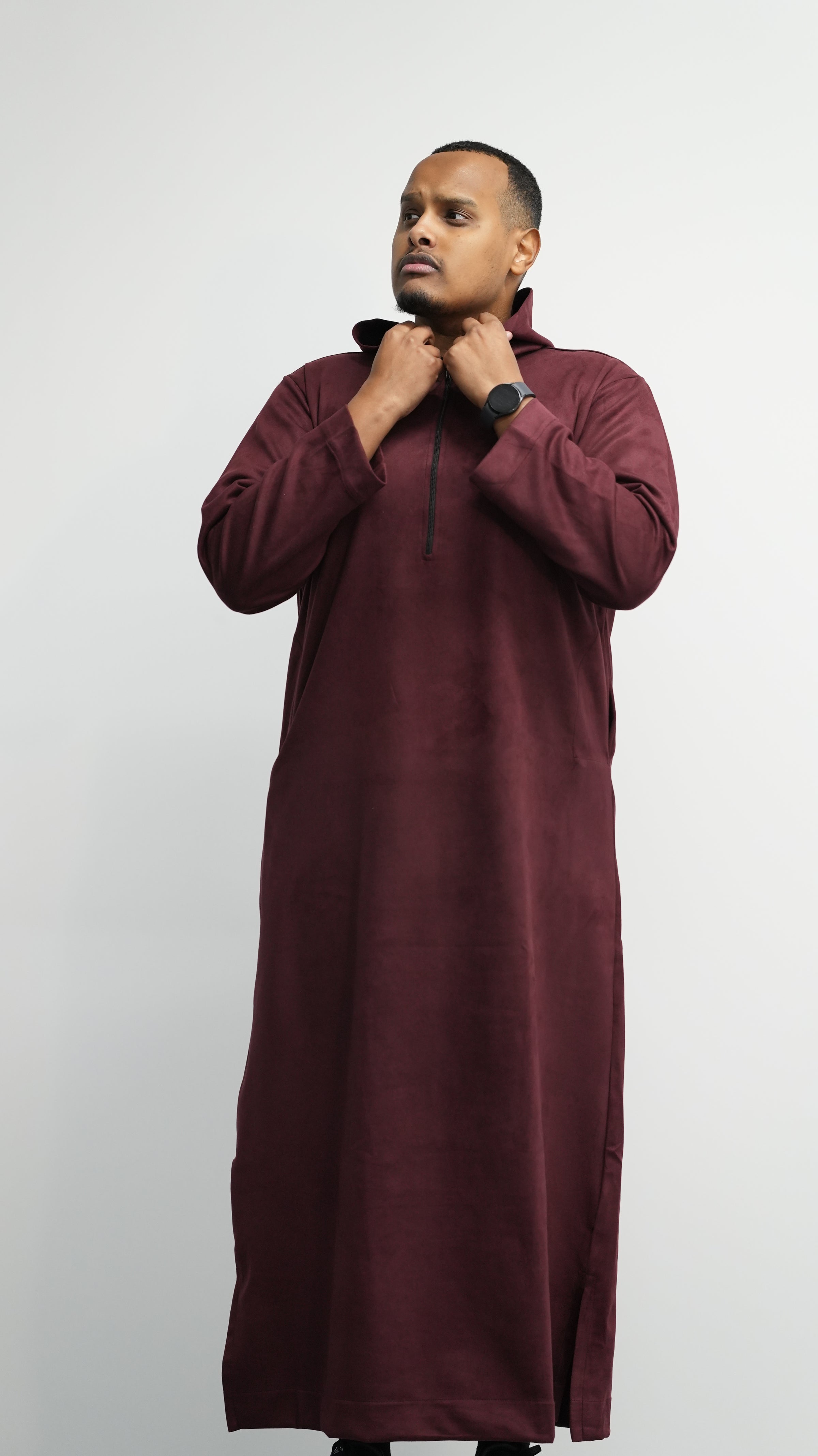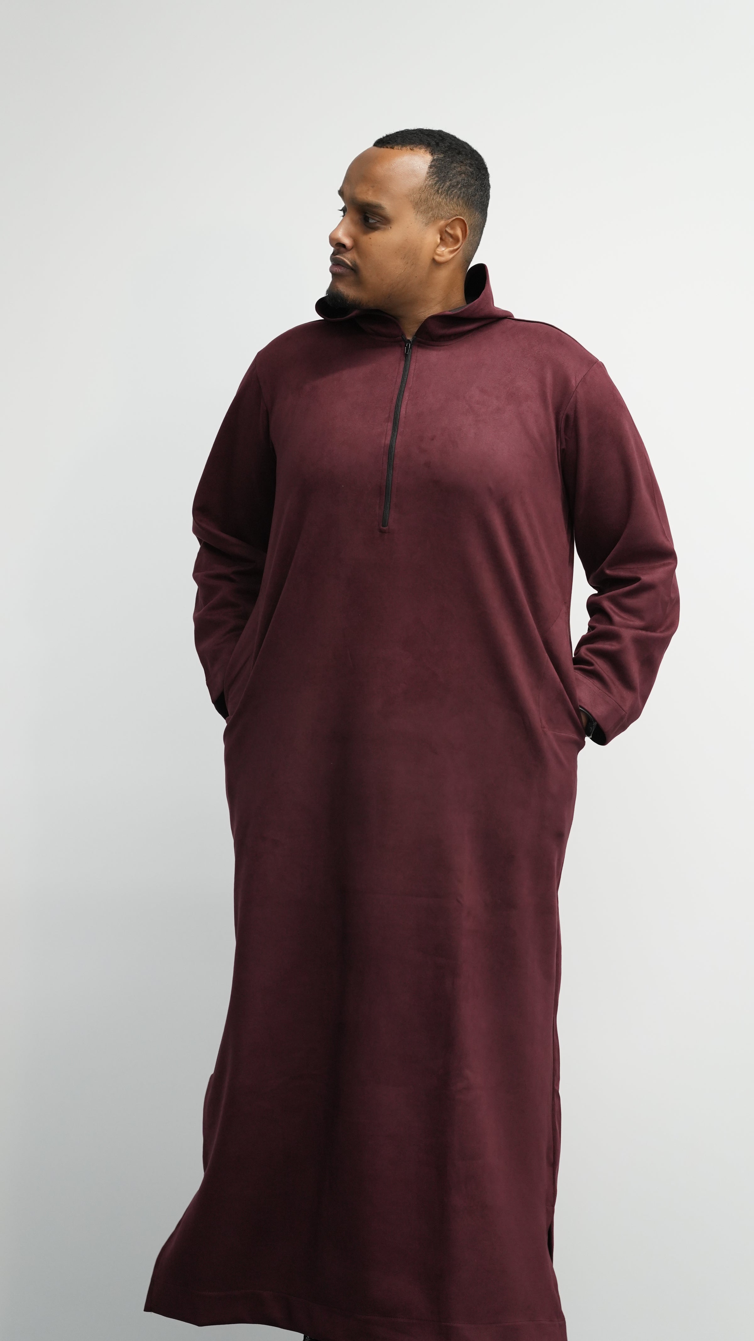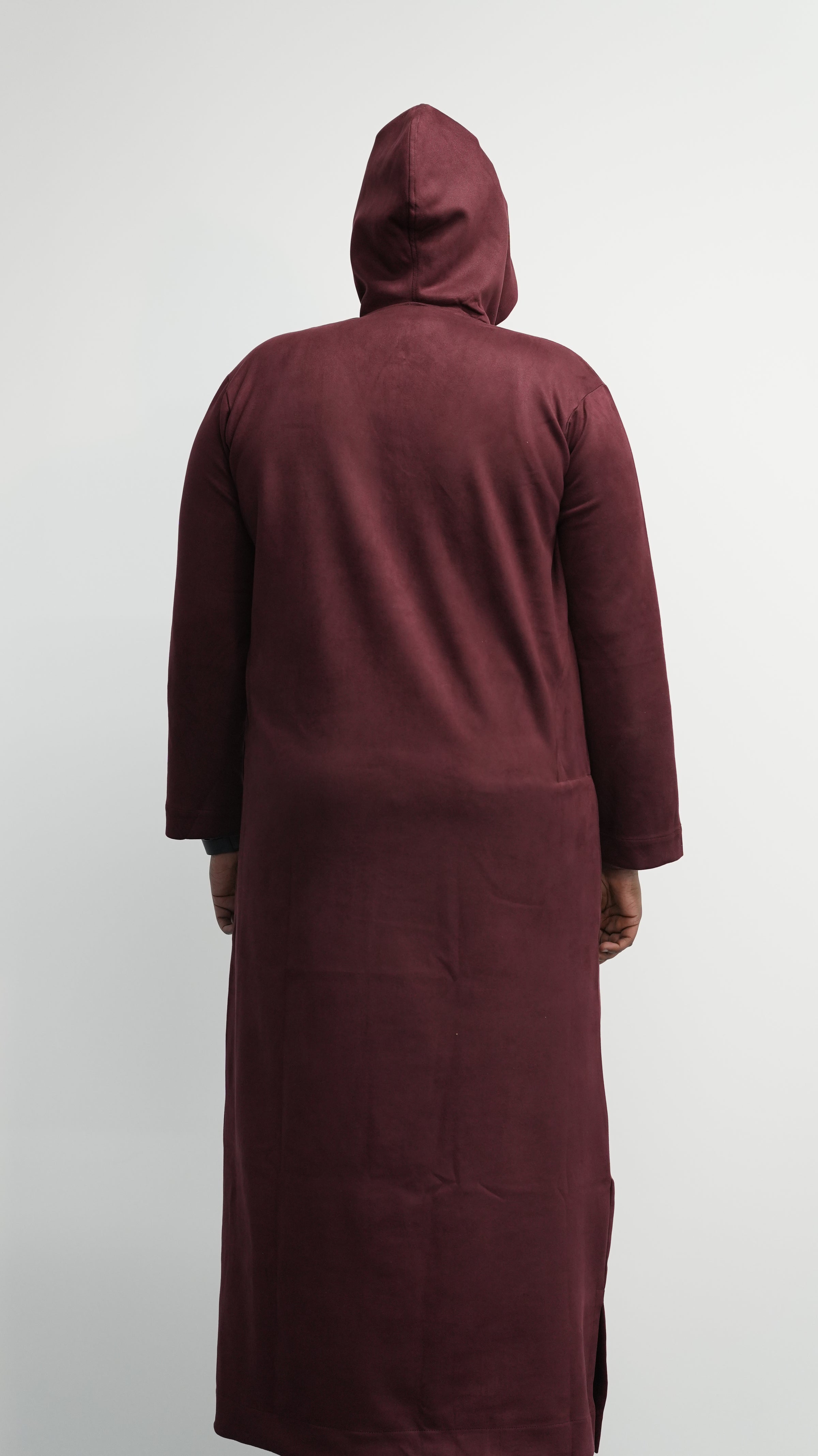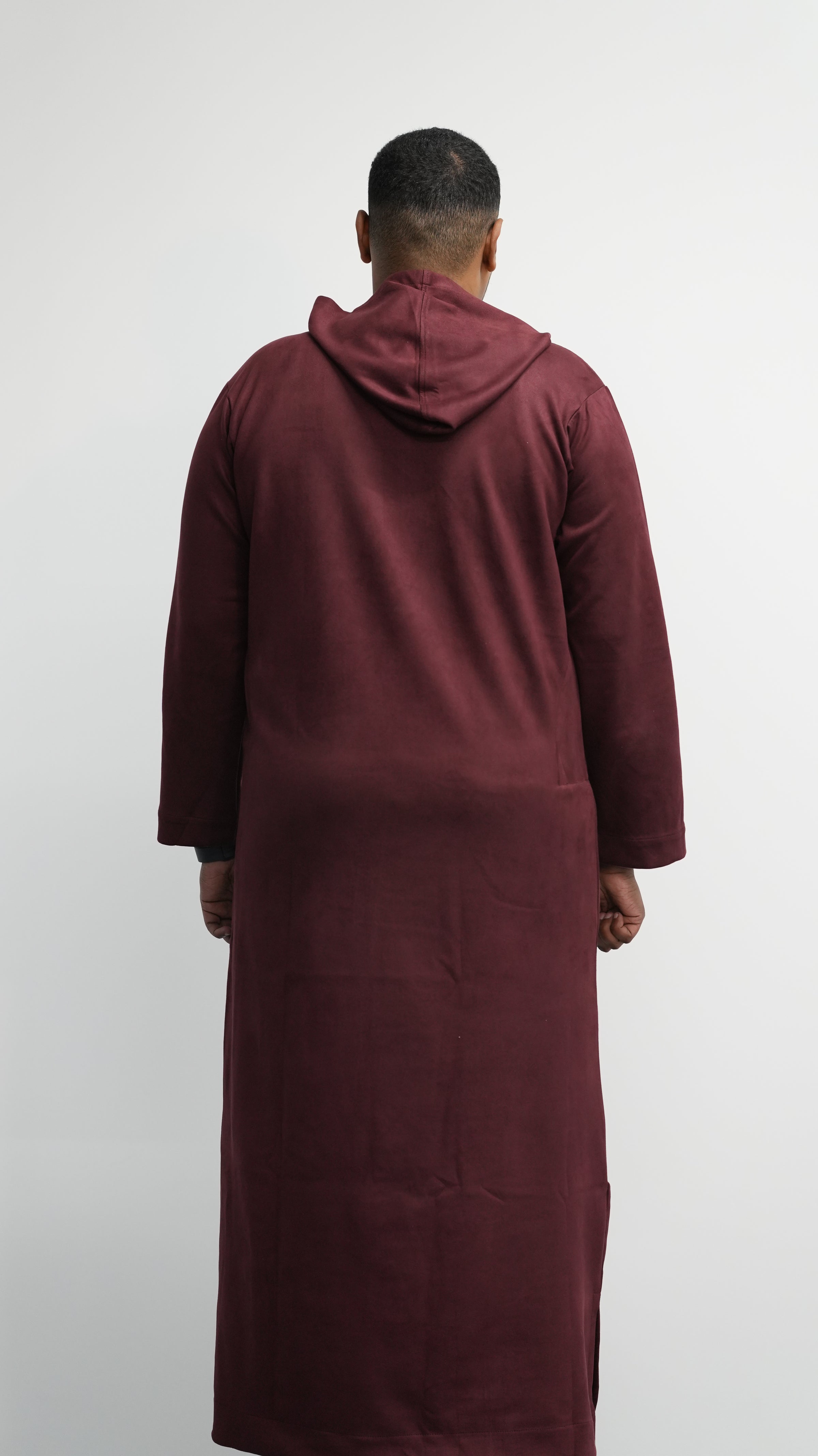 Luxury Burgundy Suede Hooded Thobe #MSH7
