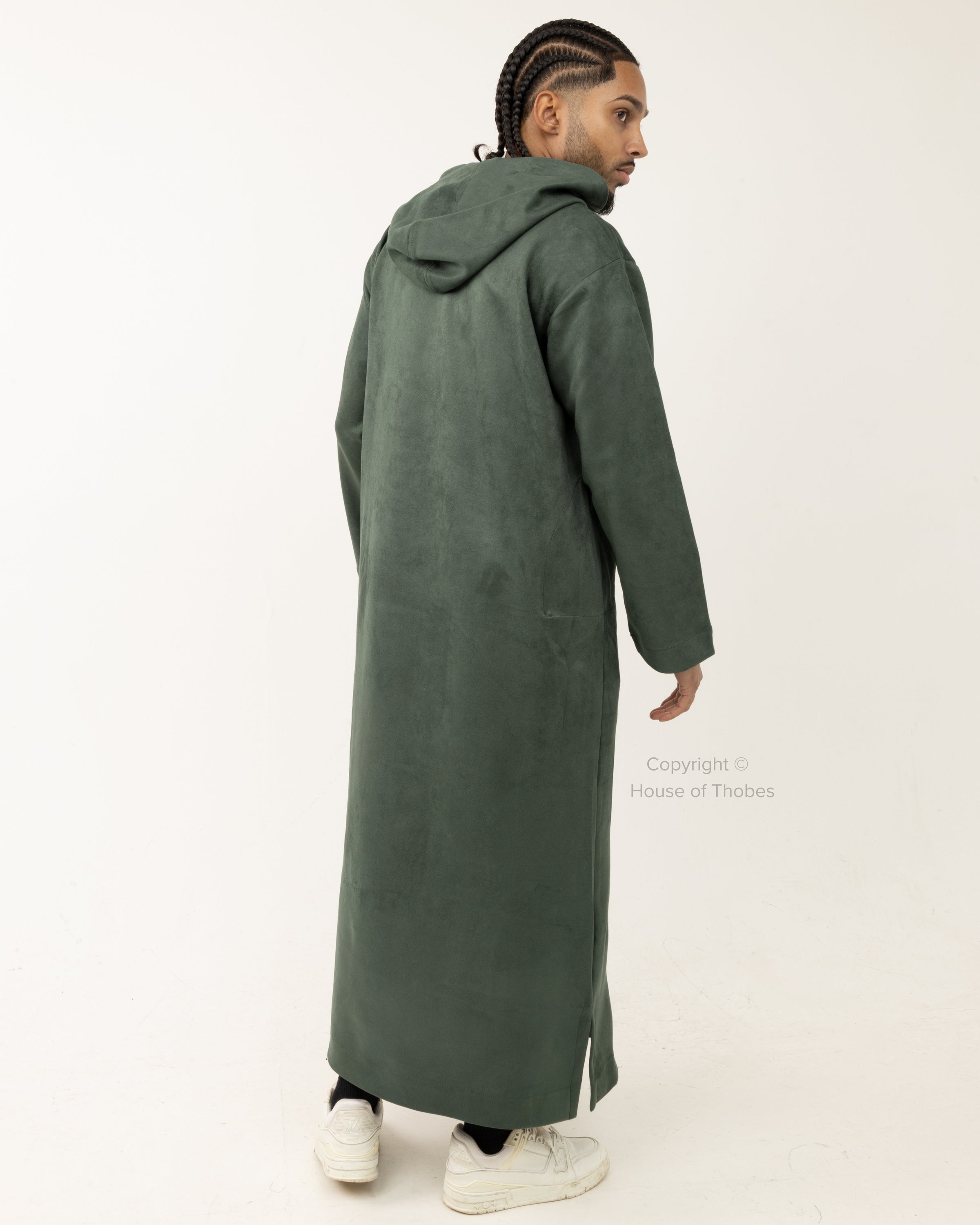 Luxury Green Suede Hooded Thobe #MSH3
