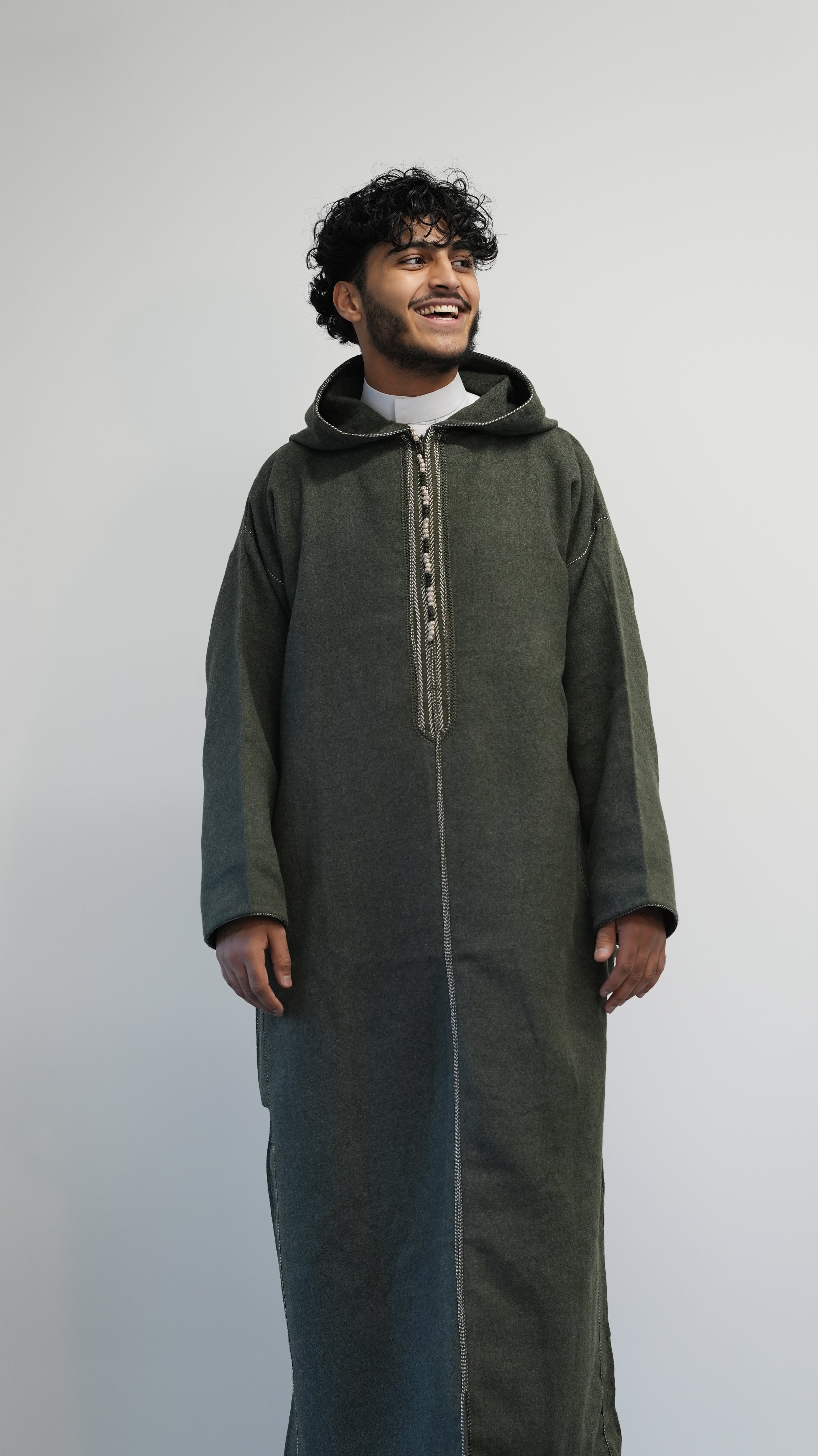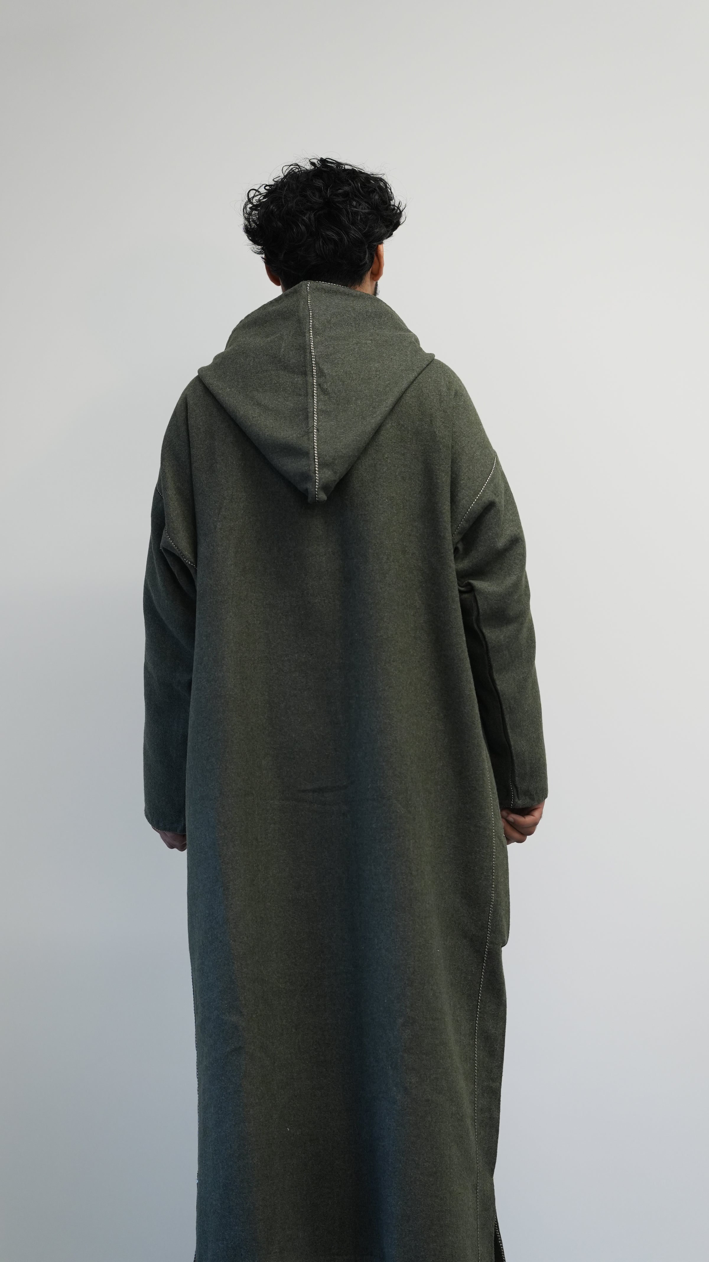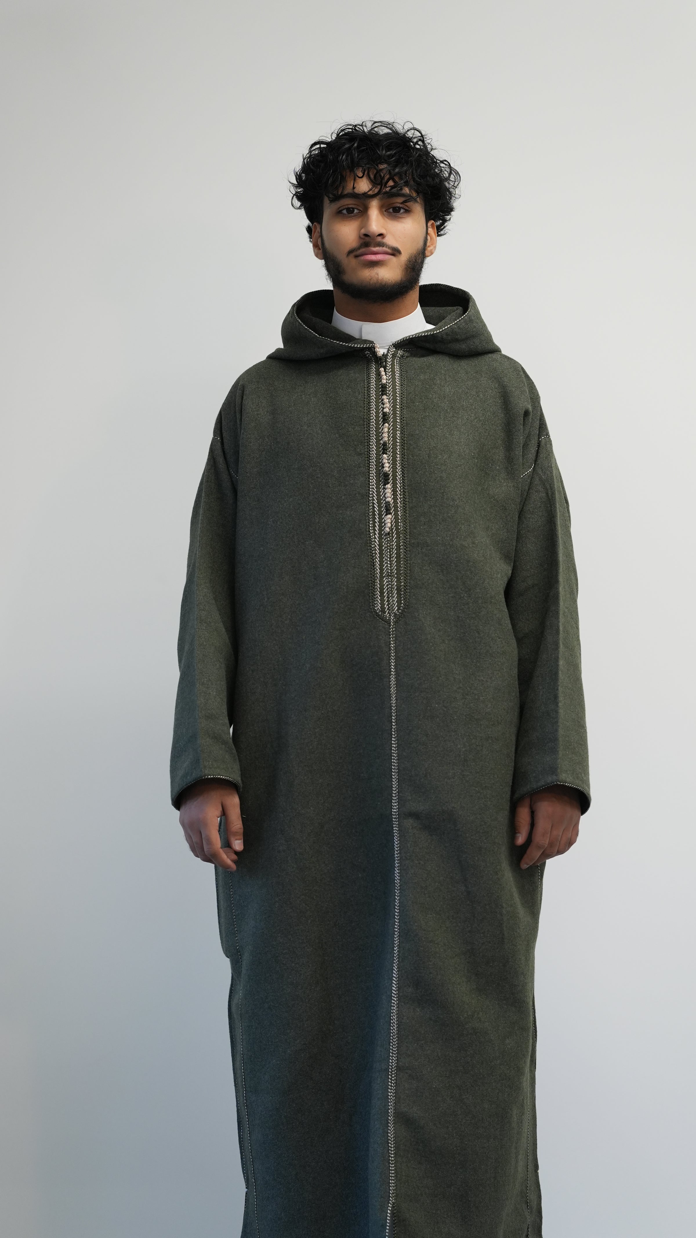 Luxury Green Winter Moroccan Djellaba | Thobe with hood